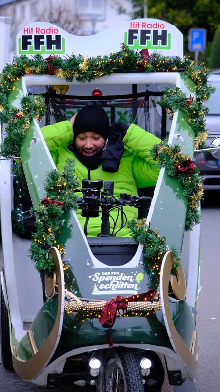 SCHWALMSTADT-ZIEGENHAIN. Seit Montag radelt Daniel Granitzny von HIT RADIO FFH mit dem „Spendenschlitten“ quer durch Hessen, um Spenden für den guten Zweck zu sammeln. Die Tour, die in Bad Karlshafen (Landkreis Kassel) begann, endet auf dem Weihnachtsmarkt in Michelstadt (Odenwaldkreis).