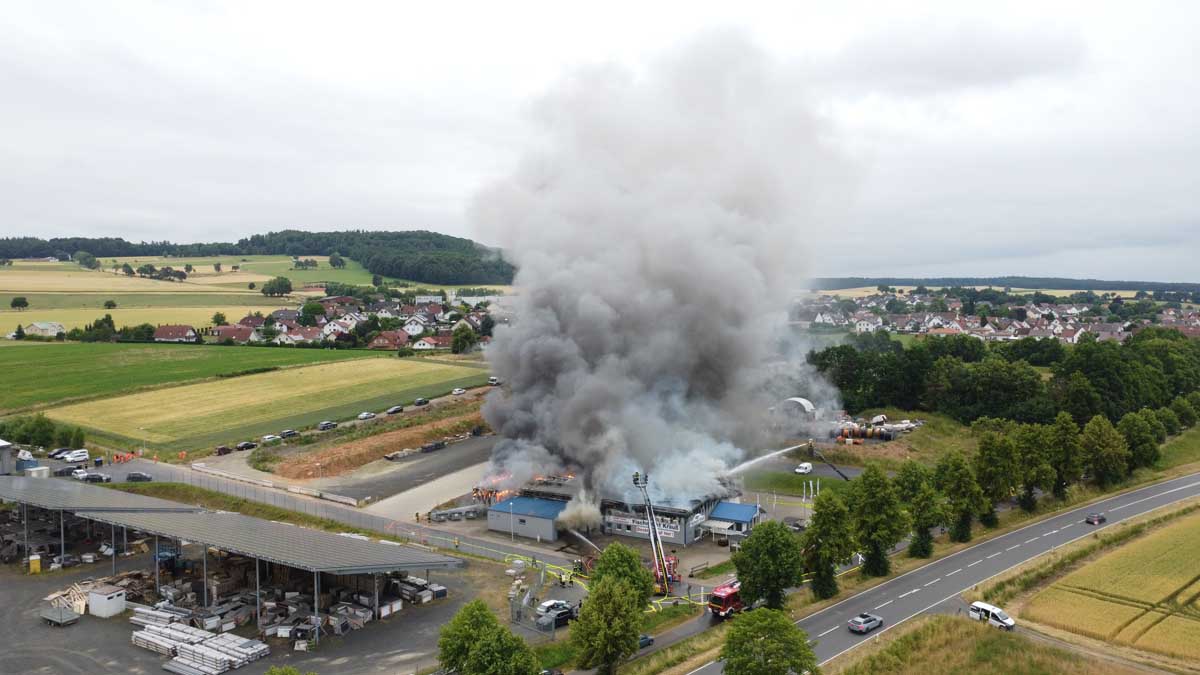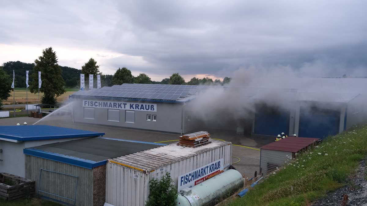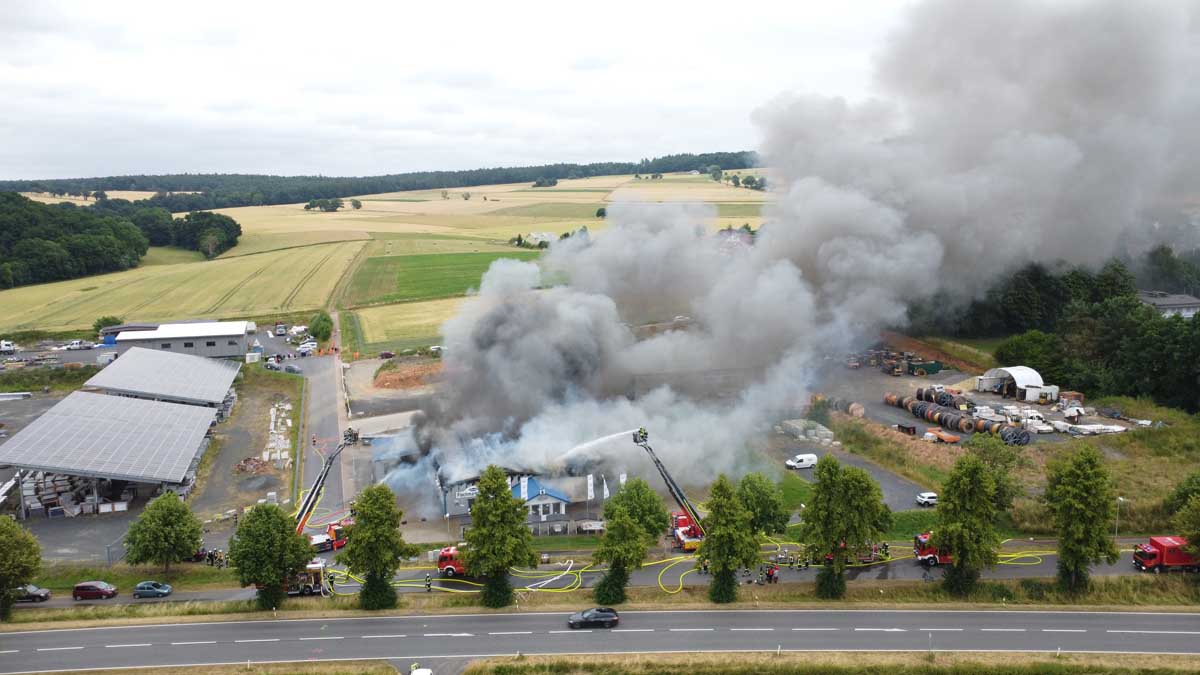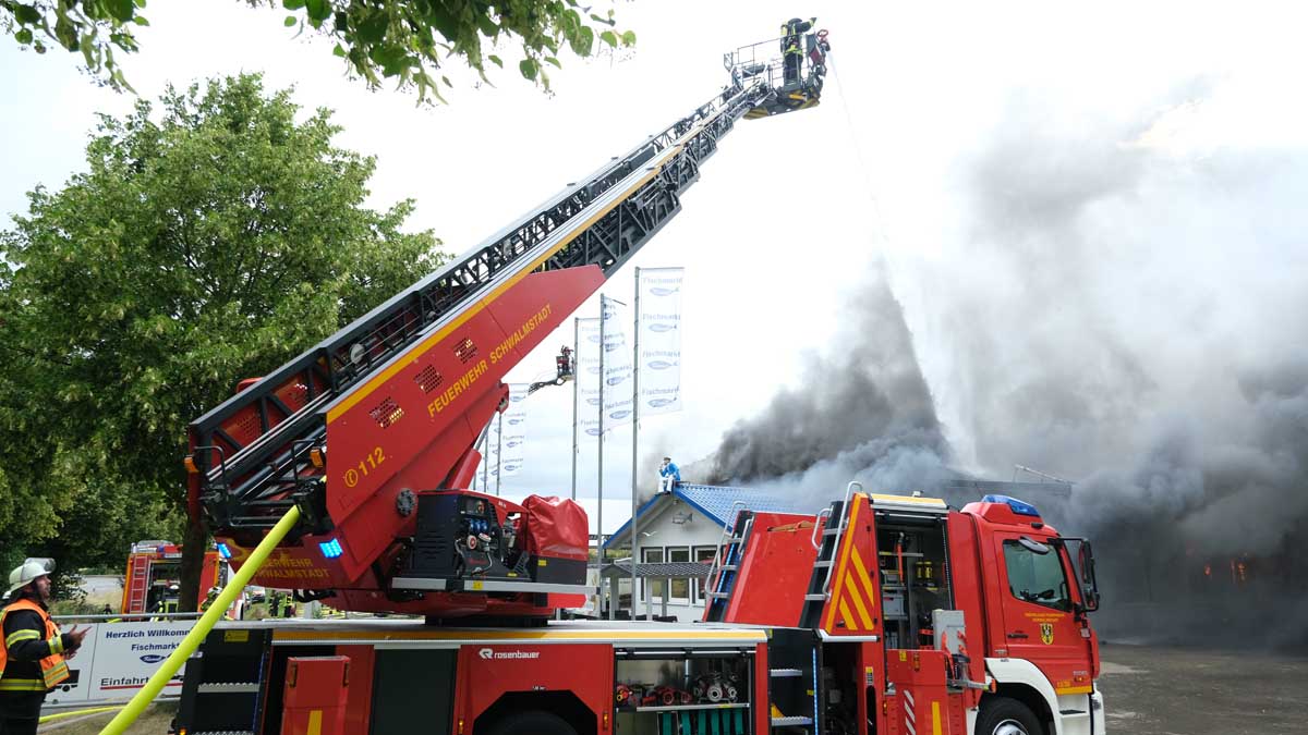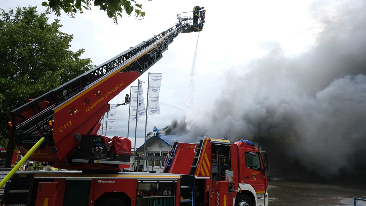 SCHRECKSBACH. Seit Donnerstagmorgen steht das Betriebsgebäude des Fischmarkts Krauß an der Bundesstraße 254 in Schrecksbach (Schwalm-Eder-Kreis) in Flammen. Auch mehrere Verkaufsfahrzeuge des Unternehmens, die sich in dem Gebäude befanden, wurden durch das Feuer vollständig zerstört.