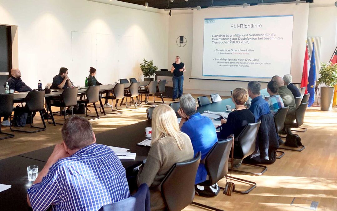Fachleute betonten, dass nur eine einwandfreie Desinfektion eine Verschleppung des Virus verhindern kann. Externe Referenten erläuterten anhand praktischer Beispiele typische Fehlerquellen und gaben Hinweise für wirksame Maßnahmen in Betrieben.