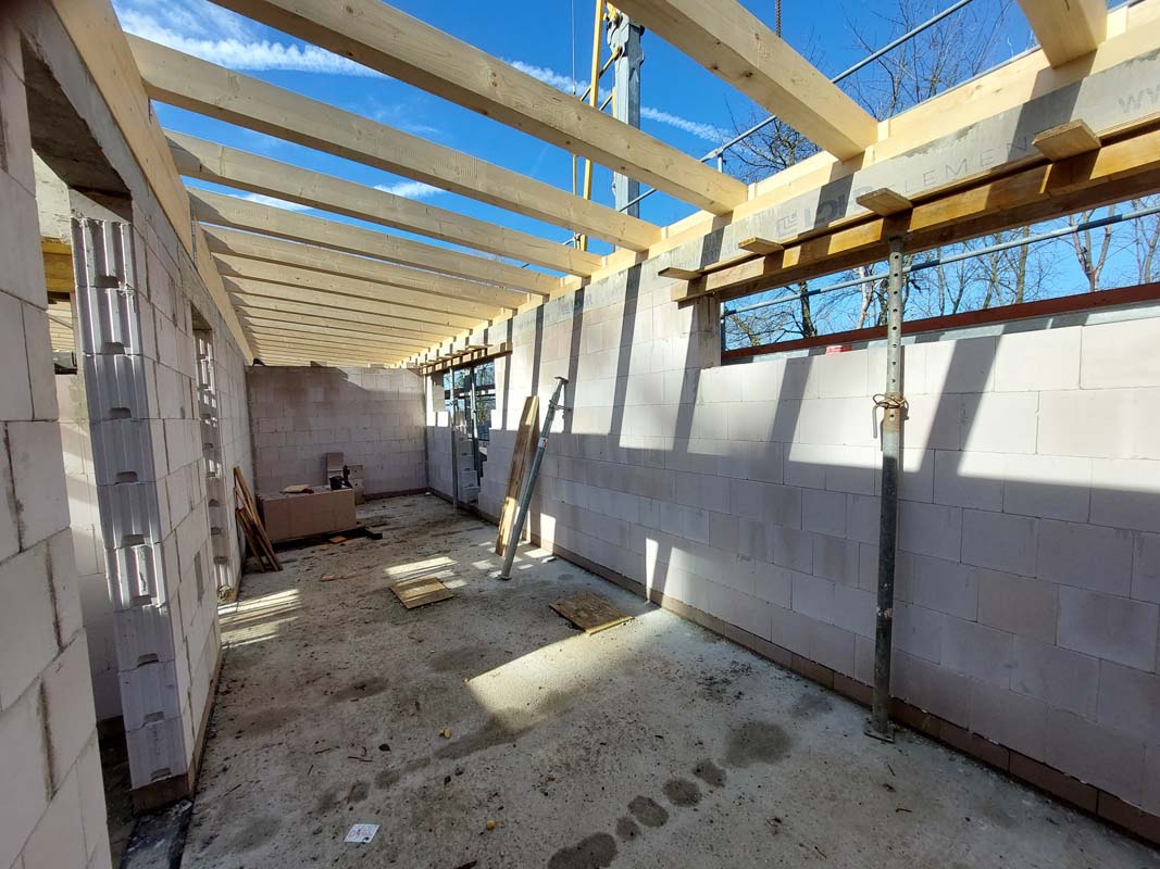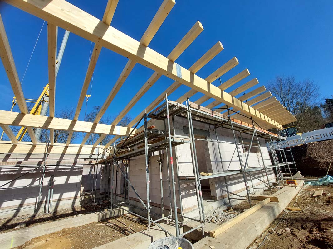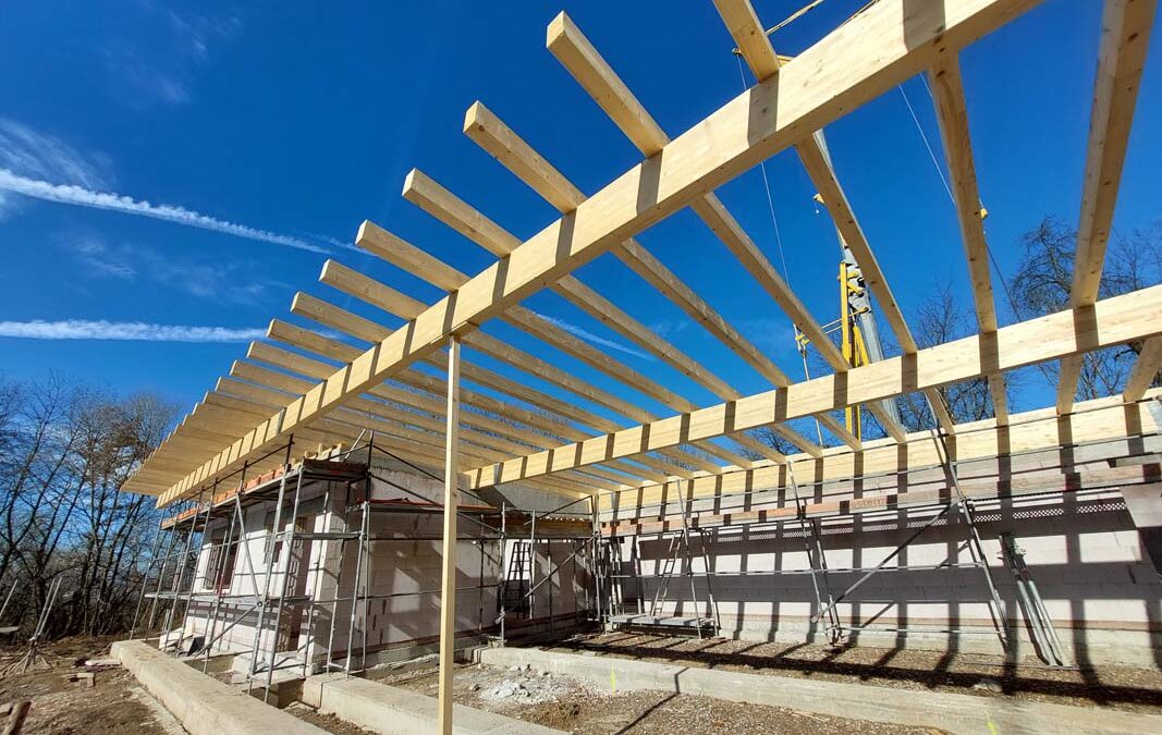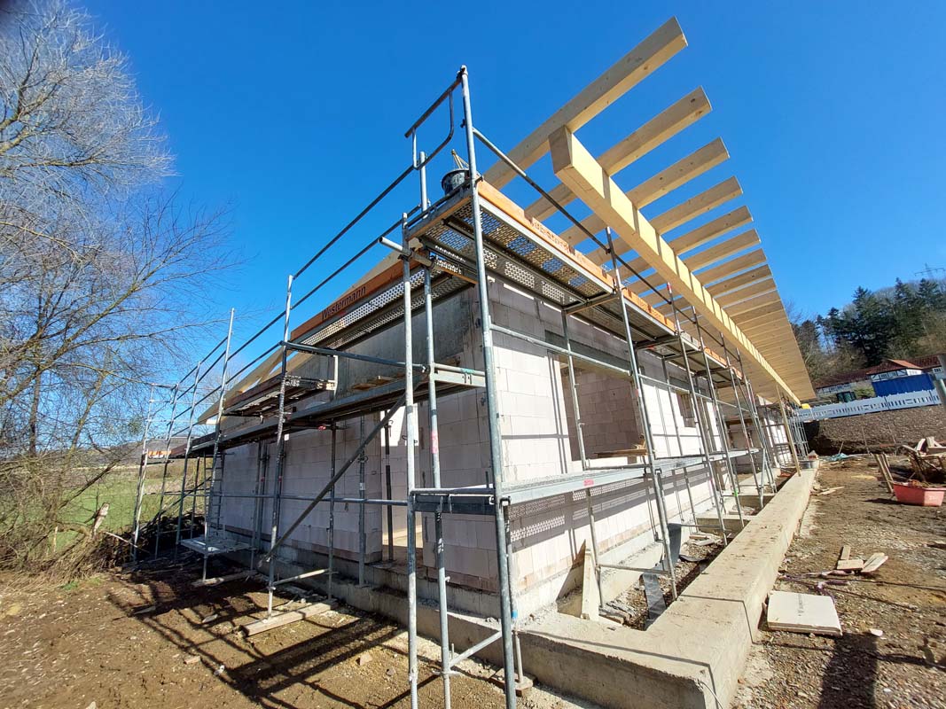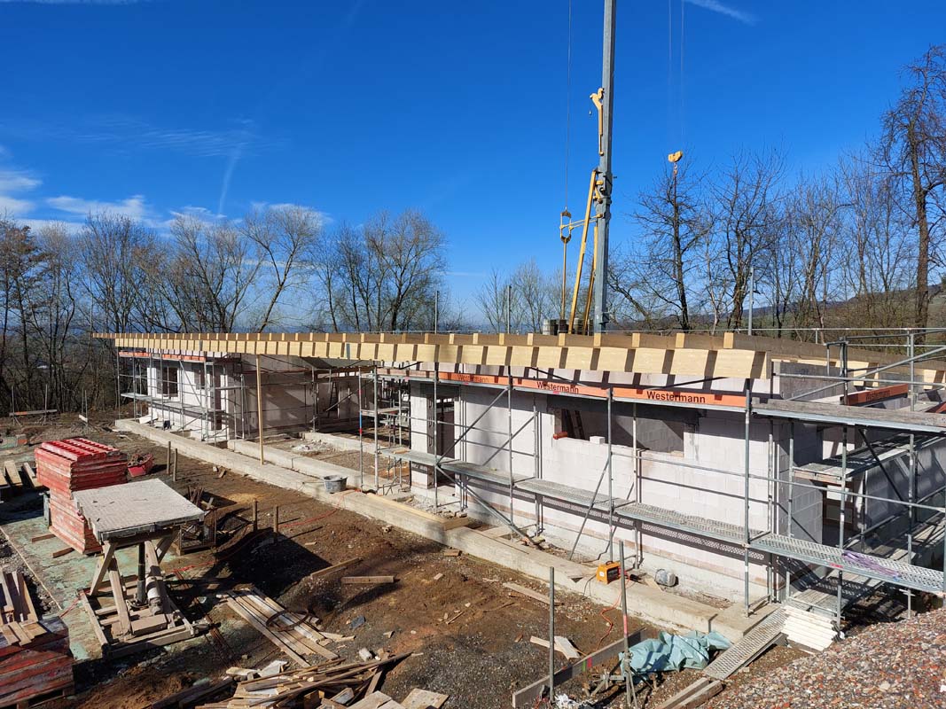 HOMBERG (EFZE). Die Arbeiten am Funktionsgebäude des Freibads Erleborn in Homberg (EFZE) schreiten voran. Das Dach wurde bereits errichtet, und in Kürze beginnen die Dachdeckerarbeiten. Anschließend werden Fenster und Türen eingebaut, um den Innenausbau vorzubereiten.