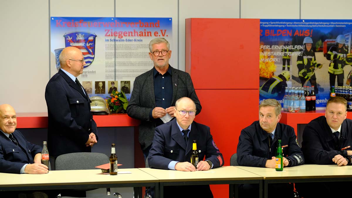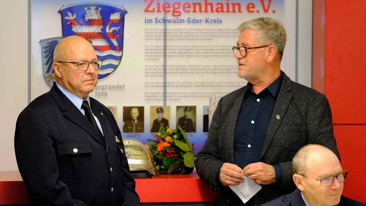 SCHWALMSTADT-ZIEGENHAIN. Am Dienstagabend ehrte Marcel Ochs, Wehrführer der Feuerwehr Schwalmstadt-Ziegenhain, seinen langjährigen Vorgänger Frank Model als Vorbild, Mentor und verlässlichen Freund. Nach 47 Jahren im aktiven Dienst wechselt Model nun in die Ehren- und Altersabteilung. Bereits an seinem Geburtstag im September hatte er seinen Melder abgegeben, jedoch musste die offizielle Verabschiedung wegen einer Corona-Infektion zunächst verschoben werden.