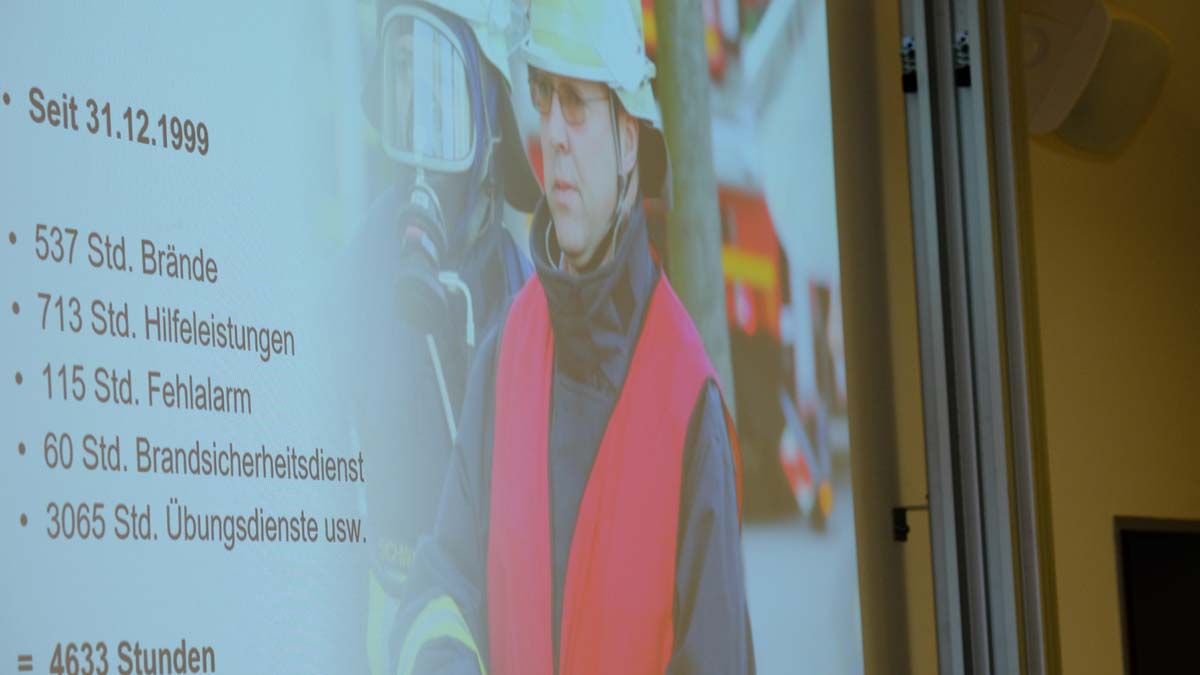 Ein auf die Leinwand projizierter Videogruß kam zudem von den Kameraden der Partnerfeuerwehr aus dem sächsischen Ziegenhain.