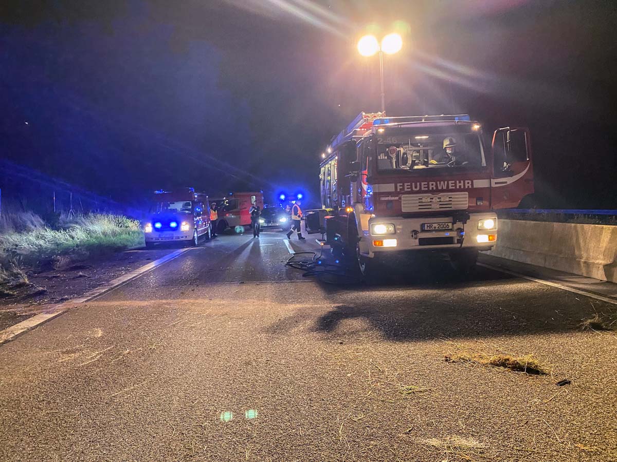 Zudem wurde im Fahrzeug Munition in Form von Platzpatronen gefunden. Neben der Feuerwehr Fritzlar und der Autobahnpolizei Baunatal, waren auch zwei Rettungswagen und ein Notarzt vor Ort im Einsatz. Die Autobahn war für rund zwei Stunden in Richtung Kassel voll gesperrt.