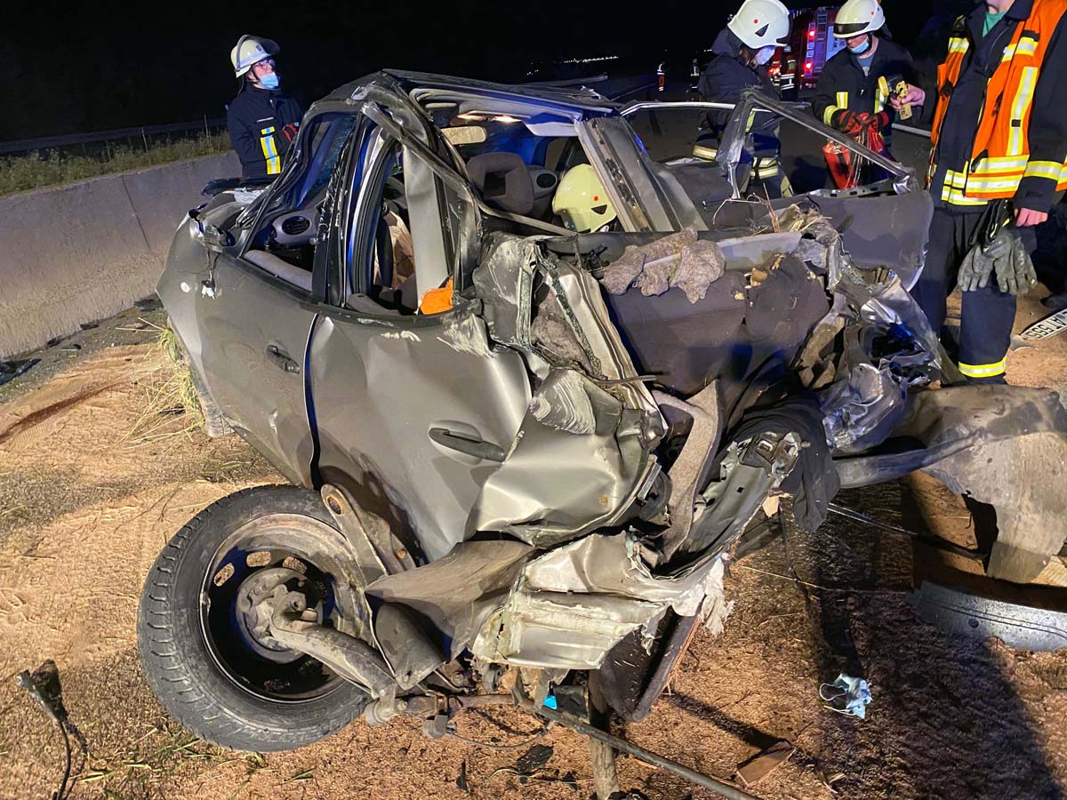 Nach ersten Erkenntnissen von der Unfallstelle wollte eine 26-jährige Frau aus Fritzlar einen vor ihren fahrenden Verkehrsteilnehmer überholen. Vermutlich aufgrund von überhöhter Geschwindigkeit verlor die Frau die Kontrolle über ihr Fahrzeug und stieß mit der mittleren Betonabgrenzung zusammen. Von dieser wurde sie abgewiesen, querte dabei alle Fahrspuren bis auf den Grünstreifen. Von dort ging es wieder zurück über alle Fahrspuren, das Auto krachte erneut gegen die mittlere Betonabgrenzung und überschlug sich mehrfach. Völlig zerstört kam die Mercedes A-Klasse auf der linken Spur auf dem Dach liegend zum Stillstand. Ein nachfolgender 21-jähriger Mann aus Kassel erkannte die Situation offenbar zu spät und krachte in die Unfallstelle. Sein auf der Fahrerseite beschädigtes Fahrzeug brachte der junge Mann rund 250 Meter weiter an der mittleren Betonabgrenzung zum Stillstand.