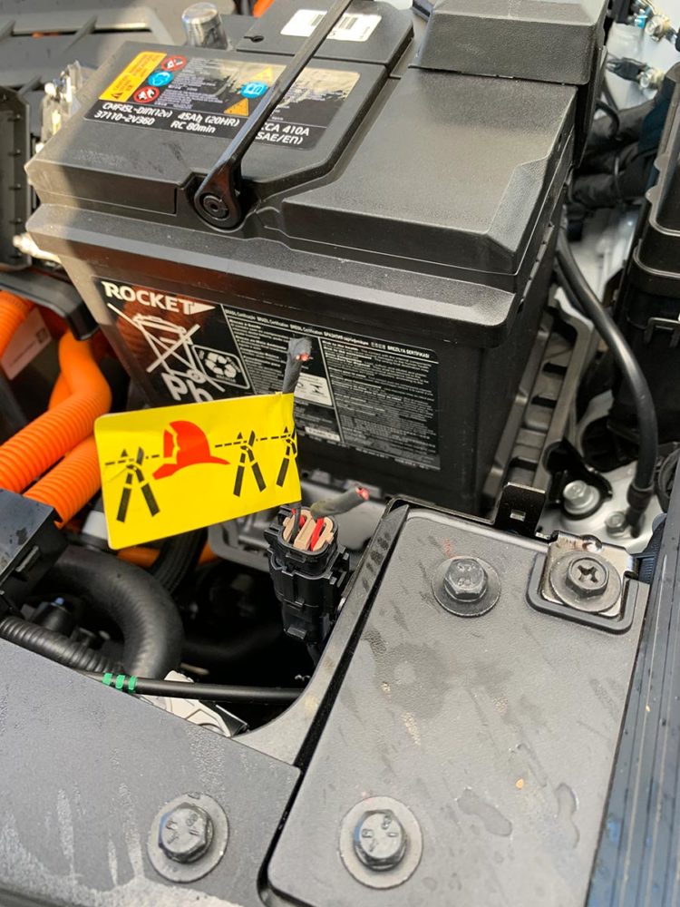 Anschließend kontrollierten Feuerwehrleute den Akku des Kias mit einer Wärmebildkamera. Nachdem das Rettungsdatenblatt des Autos vorgelegen hatte, konnte die Hochvolt-Trennstelle mit einem isolierten Seitenschneider durchgeschnitten werden, berichtet ein Feuerwehrsprecher.