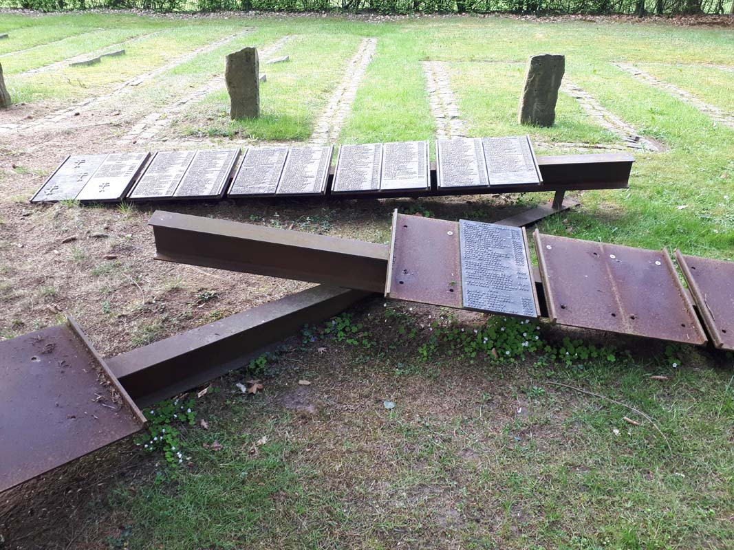 Die Täter begaben sich auf das frei zugängliche Gelände des Waldfriedhofs, der an das Schicksal der Kriegsgefangenen erinnert, und lösten mit unbekanntem Werkzeug die Befestigung von fünf Bronzetafeln. Diese waren mit jeweils vier Stahlschrauben an einem im Boden verankerten Stahlträger montiert. Anschließend nahmen die Täter die rund einen Quadratmeter großen Tafeln an sich und flüchteten unerkannt.