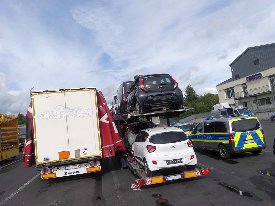 Die Verstöße reichten von geringfügigen Missachtungen der Lenk- und Ruhezeiten über erhebliche Mängel bei der Ladungssicherung bis hin zu Überladungen und technischen Defekten. Ein Lkw musste wegen einer Überschreitung der Gesamtmasse um 30 Prozent direkt am Kontrollort entladen werden. Ein Großraum- und Schwertransport wurde aufgrund eines defekten Fahrzeugrahmens und eines stark eingerosteten Druckluftbehälters vor Ort instand gesetzt. Zwei Autotransporter wiesen Längen- und Höhenüberschreitungen auf und entsprachen nicht den neuen technischen Vorgaben.