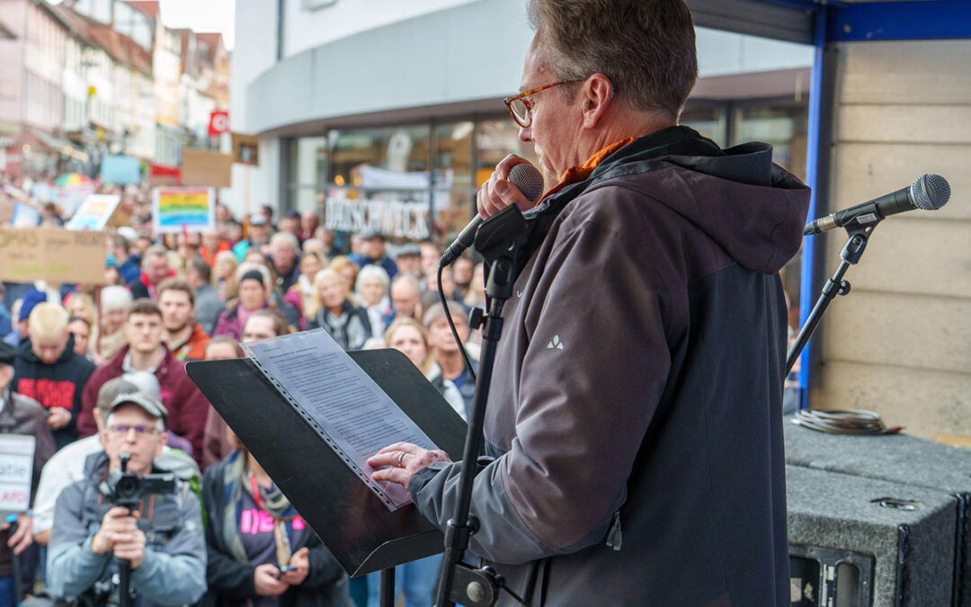 Politik und Kirche sollten grundsätzlich maximal getrennt werden. Das sage ich als Kirchenmitglied! Würden die Kirchen sich auf ihr Kerngeschäft ausschließlich begrenzen wäre allen geholfen. Ein Diskussionsabend über MItmenschlichkeit und den Kampf gegen Ausgrenzung. Wie wäre es denn zum Beispiel auch mit den Schattenseiten der Migration? Weil gerade diese Schattenseiten sind es doch die die Menschen z.B. zur AfD führen oder den Ausländerhass fördern. Die Kriminalitätsstatistiken fliegen und um die Ohren und dennoch gibts das Motto: Augen zu und durch alles andere ist rechts. Das kann aber nicht die Lösung sein. Purer Ausländerhass ist nicht die Lösung aber das wegducken vor wirklichen und nicht ausgedachten Problemen ist auch nicht die Lösung. Da hilft die größte Menschlichkeit nichts wenn man es auch teilweise mit radikalen Kräften zu tun hat. Aber genau darüber müsste doch gesprochen werden. Wie kann man radikalen Kräften aus allen Teilen der Gesellschaft (links, rechts, mit Migrationshintergrund und interreligiös) dazu bringen irgendwie sich wieder der Mitte anzunäheren anstatt die Ränder noch mehr zu radikalisieren? Ich hätte zum Beispiel nichts gegen einen richtigen politischen Stammtisch bei dem alle Parteien Vertreter entsenden können und in dem die Diskussion klar und äußerst neutral nach strengen Regeln abläuft. Sowas würde uns mal ganz gut tun weils vielleicht eine Möglichkeit ist das einigeln zu beenden. Wohin das einseitige draufschlagen führt hat man bei dem Wahlergebnis der letzten Landtagswahl gesehen.