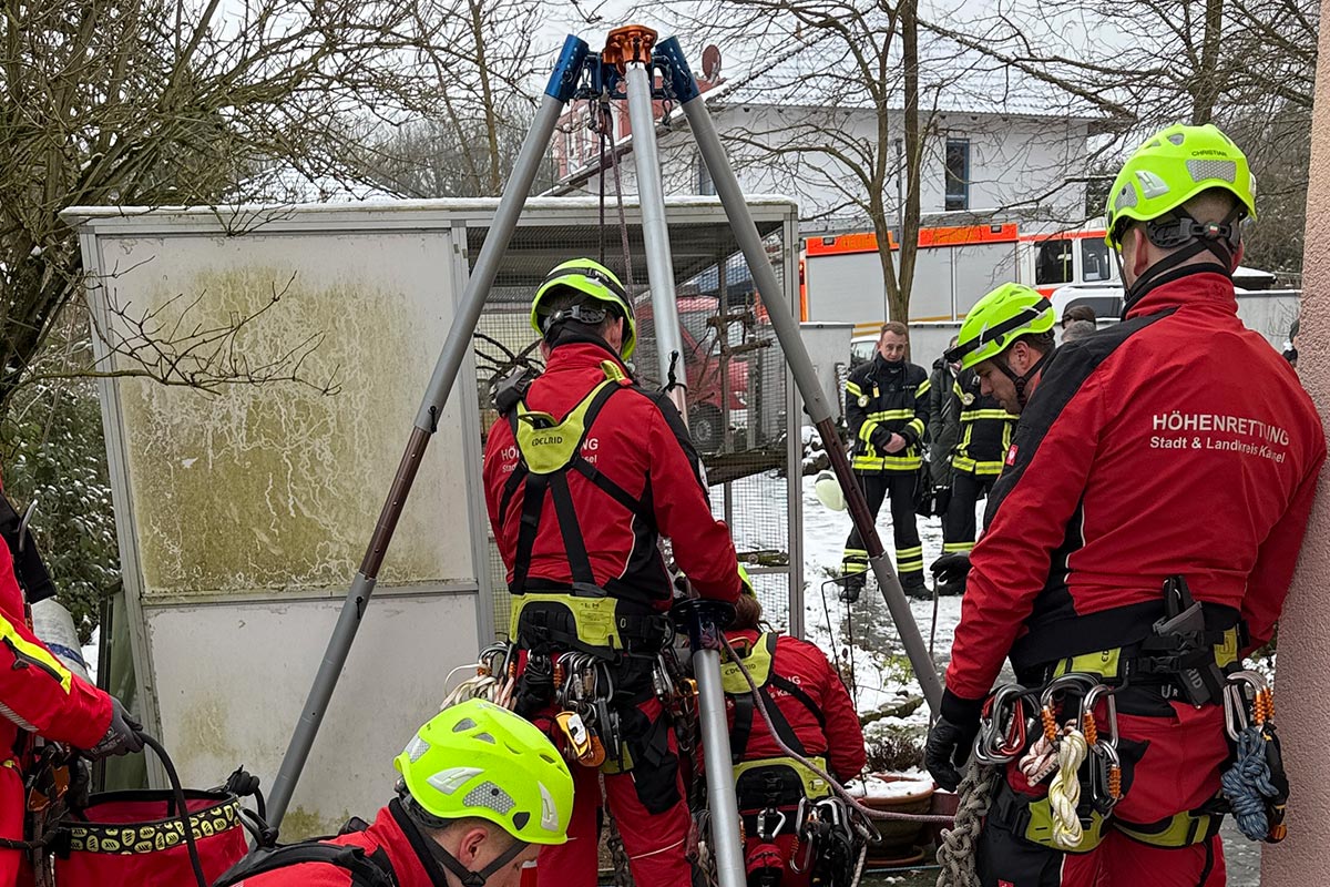Höhenretter befreien Hund aus Schacht in Kassel-Helleböhn