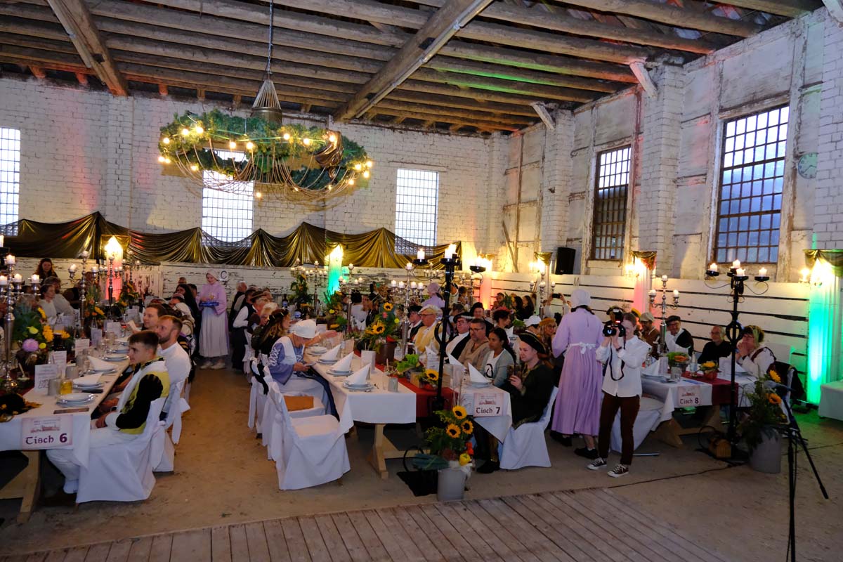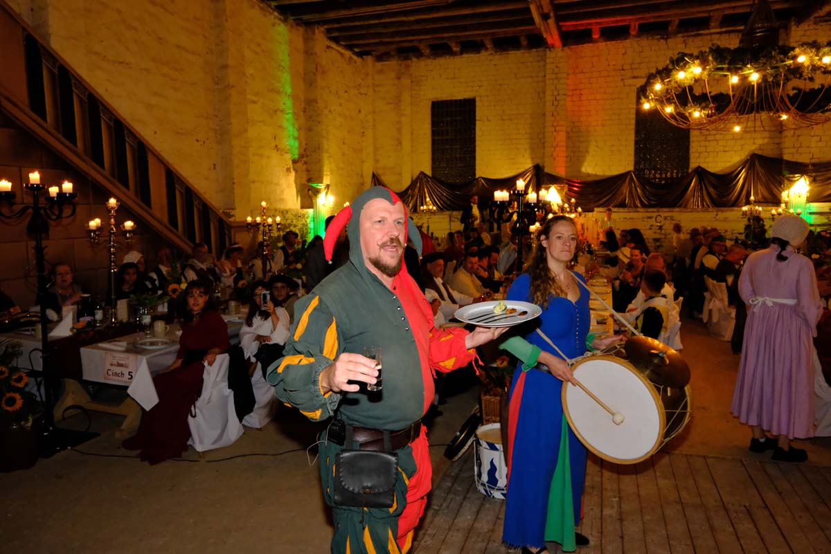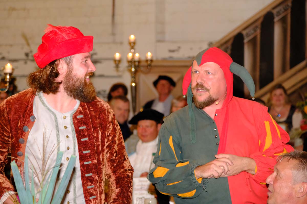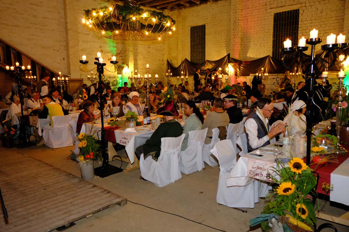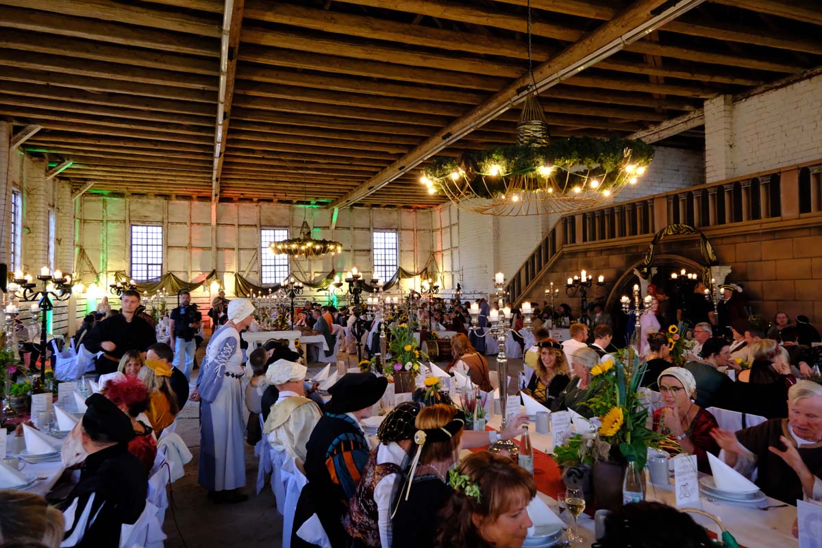 Die Tafeley, die heute Abend – bereits ausverkauft – wiederholt wird, war ein authentisches Fest mit festlicher Dekoration, leckeren Klößen und deftigem Gulasch gleitet von Musik der Spielleute, Gauklereien und Kunststücken war zugleich das kurzweilige Schaulaufen von Kleidung aus fünf Jahrhunderten, von mittelalterlich bis modern.