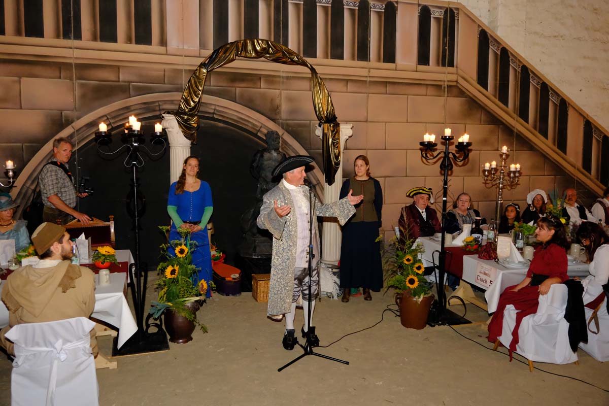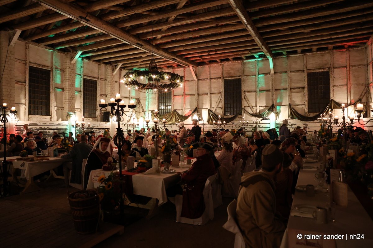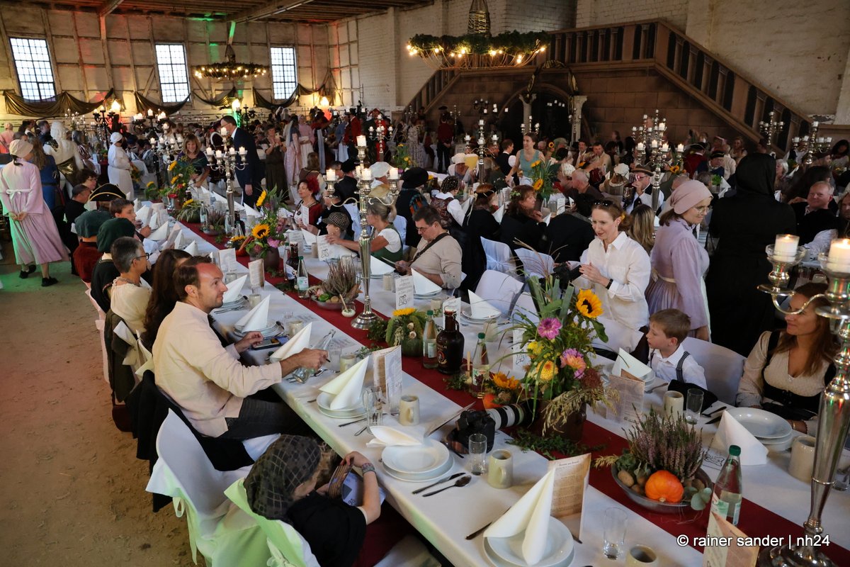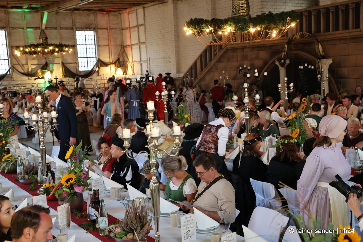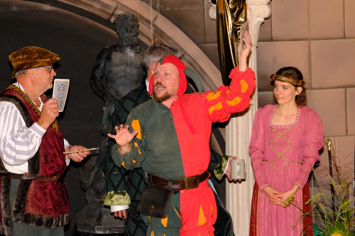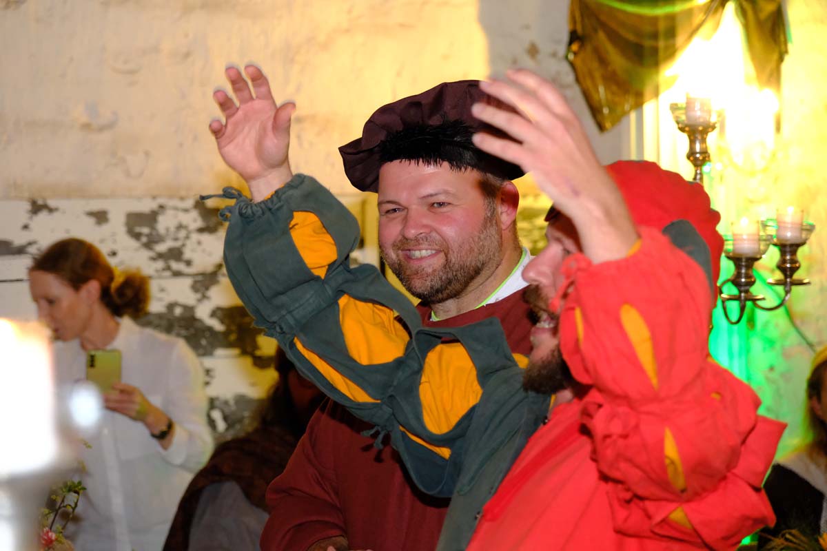 Die Tafeley, die heute Abend – bereits ausverkauft – wiederholt wird, war ein authentisches Fest mit festlicher Dekoration, leckeren Klößen und deftigem Gulasch gleitet von Musik der Spielleute, Gauklereien und Kunststücken war zugleich das kurzweilige Schaulaufen von Kleidung aus fünf Jahrhunderten, von mittelalterlich bis modern.