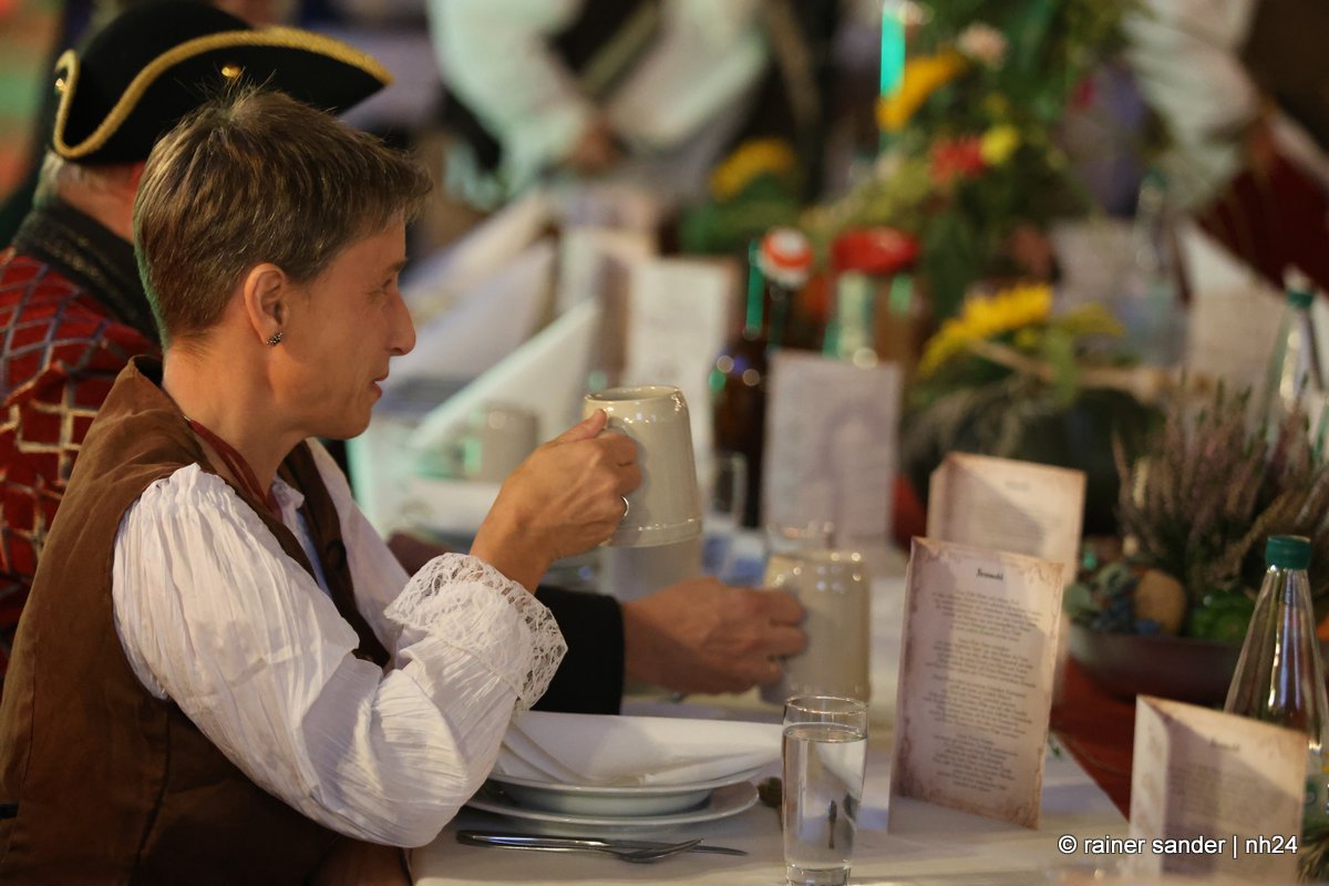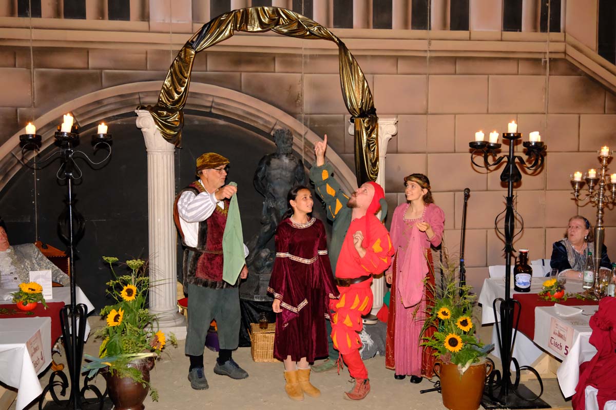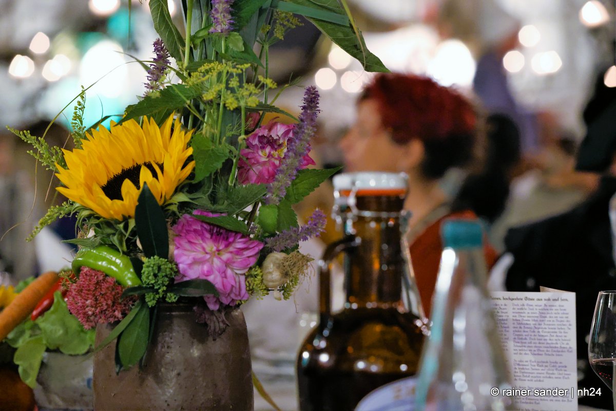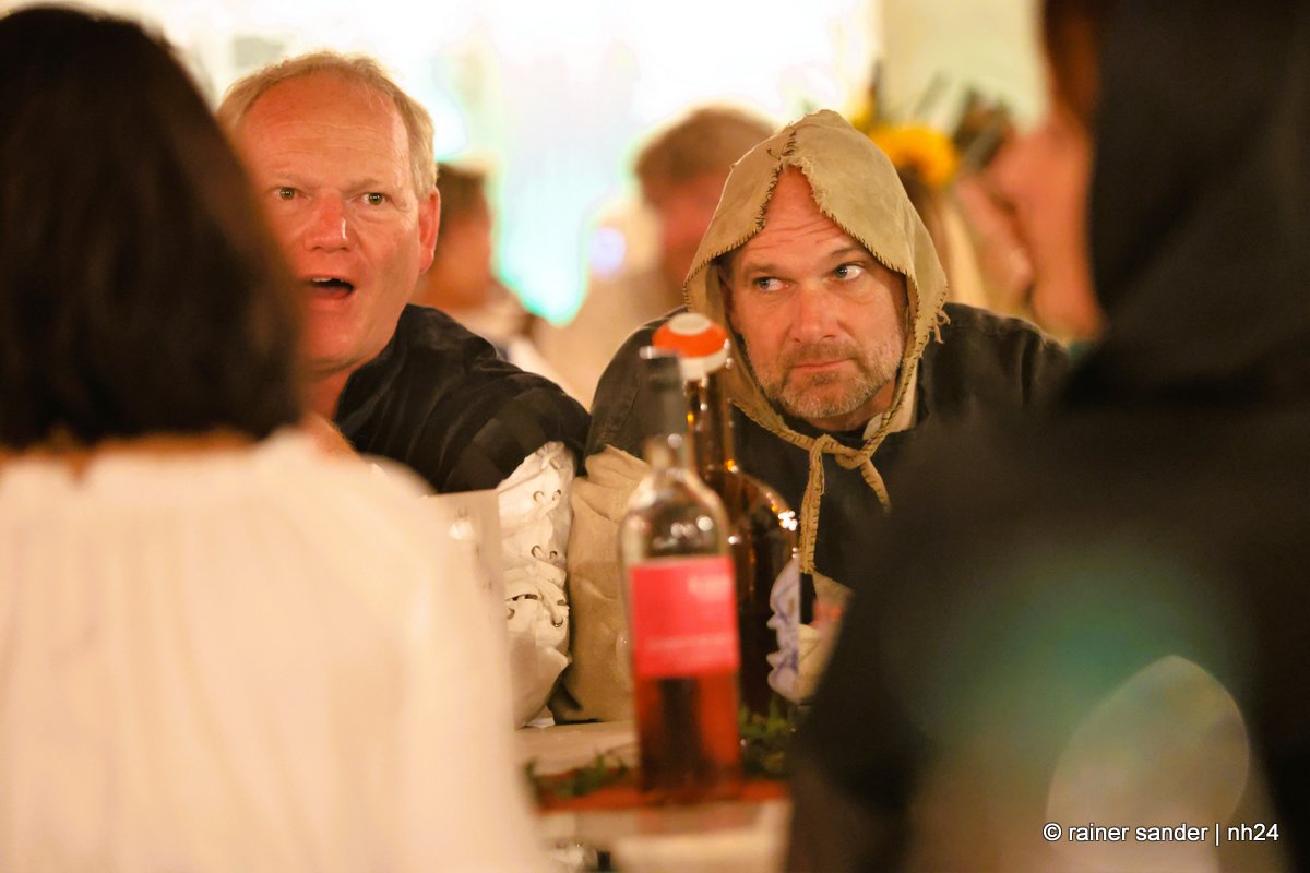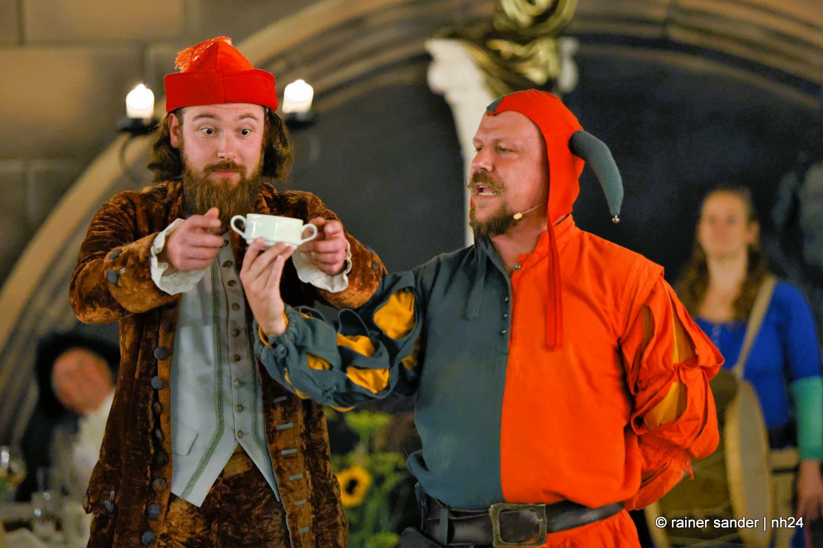 Die Tafeley, die heute Abend – bereits ausverkauft – wiederholt wird, war ein authentisches Fest mit festlicher Dekoration, leckeren Klößen und deftigem Gulasch gleitet von Musik der Spielleute, Gauklereien und Kunststücken war zugleich das kurzweilige Schaulaufen von Kleidung aus fünf Jahrhunderten, von mittelalterlich bis modern.
