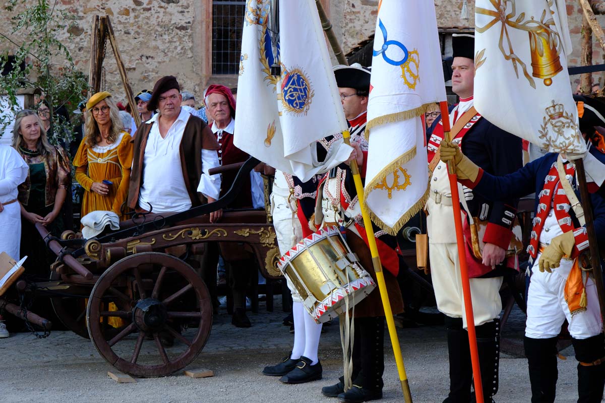 Heute lohnt ein Besuch im Festungsbereich, wenn der Landgraf die Schwälmer Bauern zum Kartoffelessen einlädt, Schwertfechter kämpfen, Soldaten durch die Stadt marschieren, Pferde gemustert werden, Handwerker ihr Können zeigen und viele andere Aktionen das Leben in der Festung aus den letzten 500 Jahren nachstellen. Dazu wurden Reenactment-Gruppen eingeladen, die sich perfekt auskennen mit der „guten alten Zeit“, wie sich hier nicht nur romantisch, sondern realistisch zeigt. Am Sonntag lockt der stehende Festzug in den Festungsbereich. Mehr Informationen gibt es HIER. (Rainer Sander)