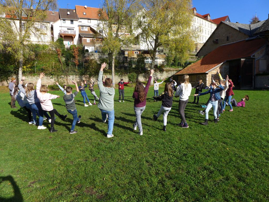Bei herrlichem Herbstwetter führte vergangene Woche ein dreiköpfiges Pädagogen-Team von anorak 21 drei Projekttage für die Jahrgangstufe 6 an der Ursulinenschule durch. An verschiedenen Stationen mussten sich die Schüler sportlichen Herausforderungen stellen und gemeinsam Aufgaben lösen.