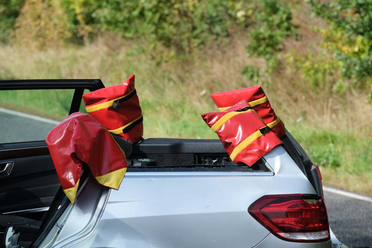 Die Insassen der Fahrzeuge konnten sich bis auf die Beifahrerin des Mercedes, die möglicherweise Rückenverletzungen erlitten hatte, mithilfe von Ersthelfern aus den Fahrzeugen befreien. Die Feuerwehrleute entfernten, nach Rücksprache mit dem Rettungsdienst, das Dach des Mercedes, um die Frau schonend mithilfe eines Spineboards (siehe Hintergrund) aus dem Unfallwrack zu bergen.