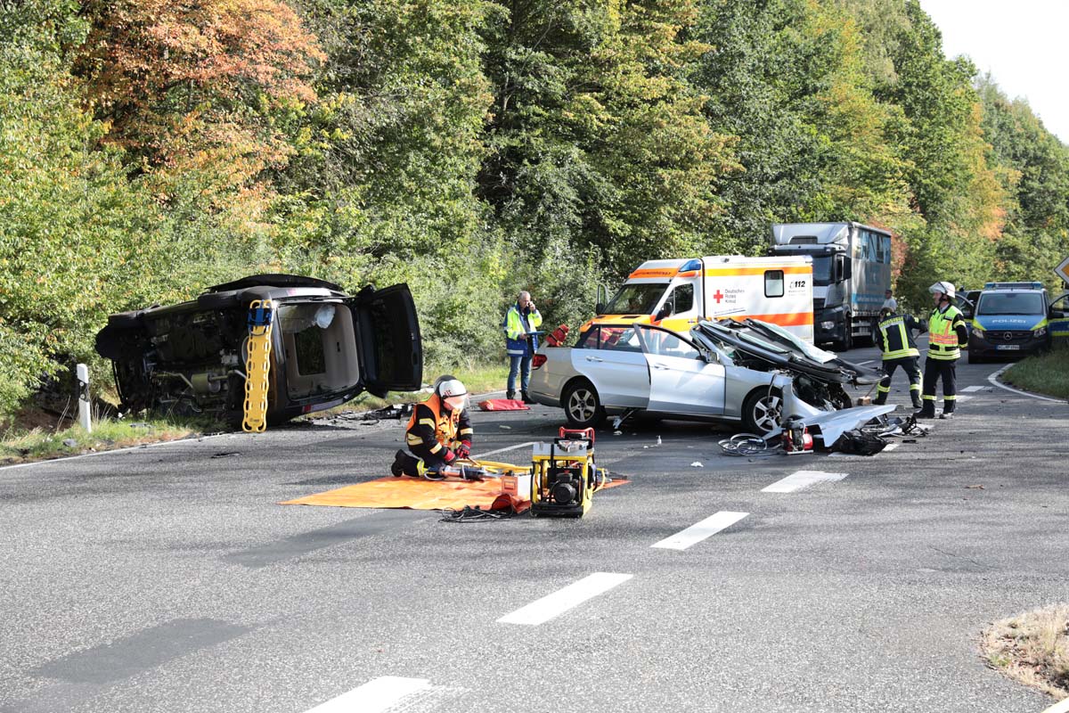 Die Fahrerin (68) des Mercedes und die beiden Insassen des Hyundai (35 und 49 Jahre alt, aus dem Landkreis Marburg-Biedenkopf) erlitten schwere Verletzungen. Rettungsteams versorgten sie vor Ort und brachten sie anschließend in Krankenhäuser in Alsfeld, Marburg und Schwalmstadt-Ziegenhain. Die 81-jährige Beifahrerin in dem Mercedes wurde von der Crew des Rettungshubschraubers Christoph Gießen zur weiteren Behandlung ins UKGM nach Gießen geflogen.