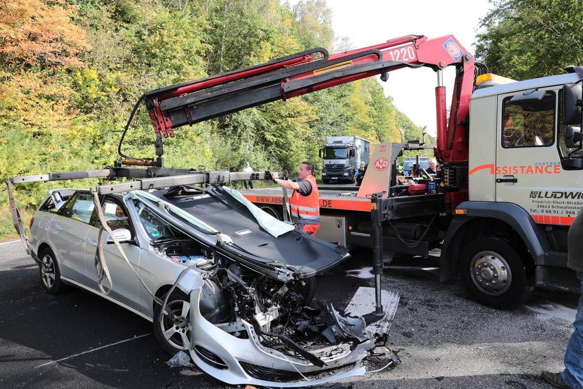 Gegen 12 Uhr wollte eine Fahrerin, die von Sachsenhausen kam, nach links in Richtung Gilserberg auf die Landesstraße abbiegen. Dabei übersah sie einen Hyundai-Kleinbus, der aus Gilserberg kam und in Richtung Treysa unterwegs war. Der Fahrer versuchte, einen Zusammenstoß zu verhindern, indem er nach links auf die Gegenfahrbahn auswich. Trotz des Ausweichmanövers konnte jedoch ein heftiger Zusammenstoß der beiden Fahrzeuge nicht verhindert werden. Der Kleinbus kippte infolgedessen am Straßenrand auf die Seite, während der Mercedes im Kreuzungsbereich zum Stillstand kam. Beide Fahrzeuge wurden erheblich beschädigt.