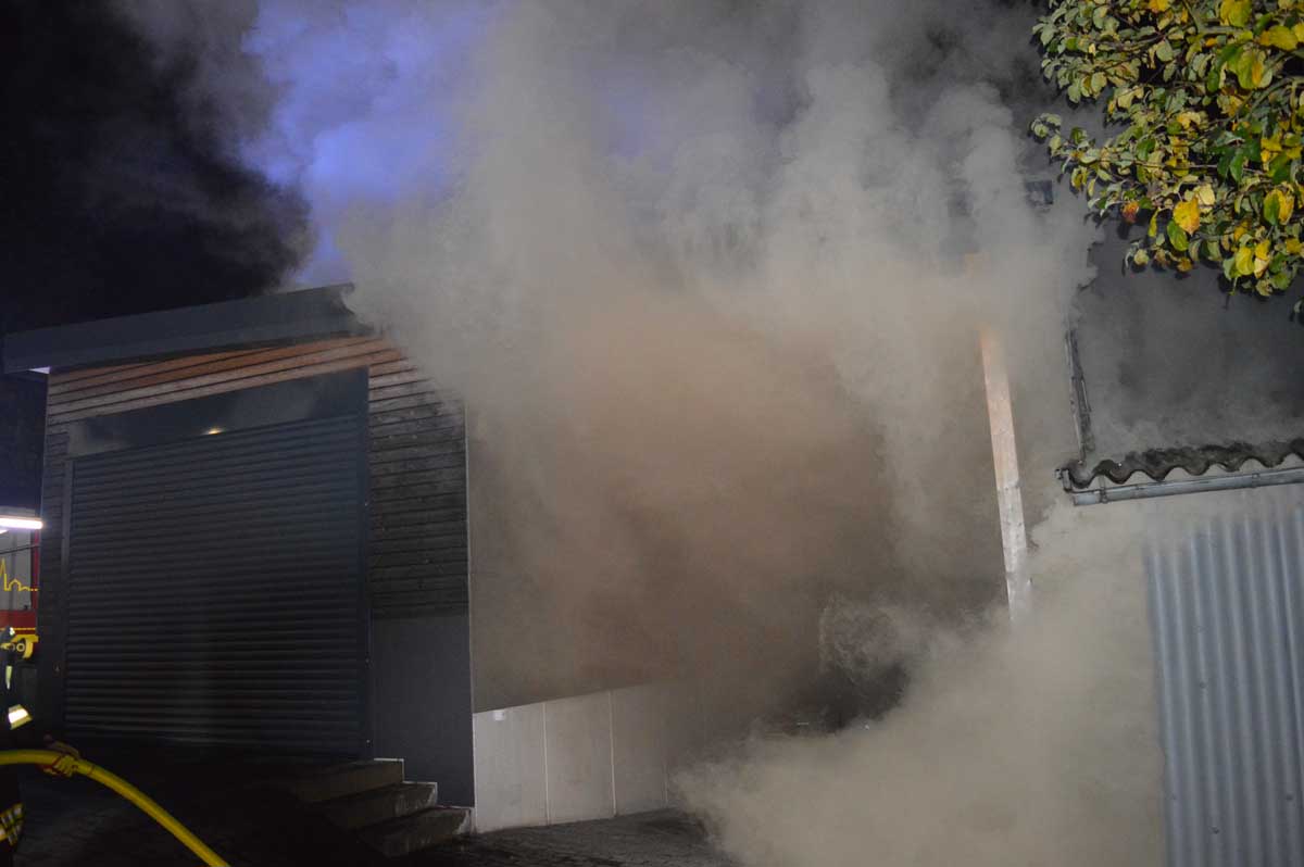 Wie Feuerwehrsprecher Stefan Schlegel mitteilte, wurde der Brand gegen 20:30 Uhr gemeldet. Beim Eintreffen der ersten Kräfte drang bereits dichter Rauch aus dem Werkstattgebäude, und Flammen schlugen aus dem Dach. Umgehend wurde ein umfassender Löschangriff eingeleitet. Mehrere Atemschutztrupps gingen in das Gebäude vor, während über die Drehleiter in der Einfahrt ein Außenangriff aufgebaut wurde.