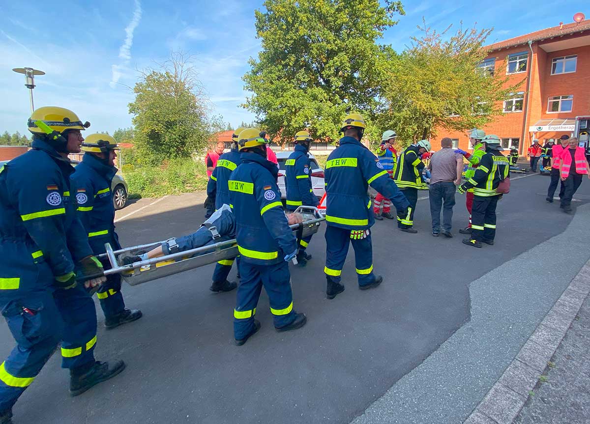 WESERTAL. Rund 330 Einsatzkräfte und Helfer haben am Samstag in Wesertal (Landkreis Kassel) eine großangelegte Zivilschutzübung durchgeführt. Auf dem Gelände des ehemaligen Klinik- und Rehabilitationszentrums Lippoldsberg probten die Einheiten den Ernstfall nach einem fiktiven Erdbeben. Ziel war es, die Zusammenarbeit zwischen Feuerwehr, Technischem Hilfswerk (THW), Sanitätsorganisationen und Betreuungsdiensten zu trainieren.
