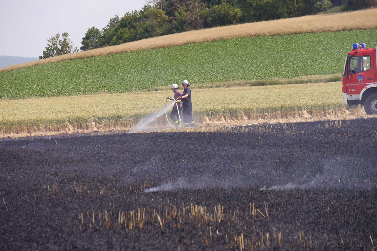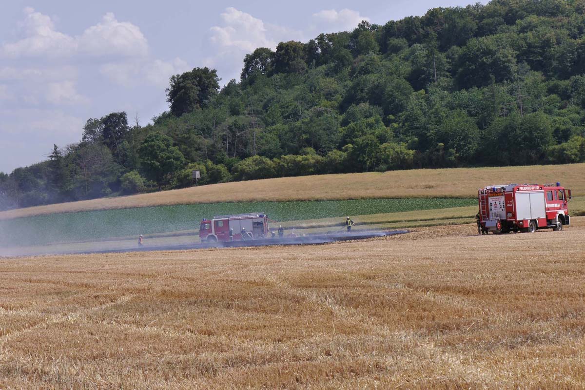 An der Straße zwischen Gudensberg und Gleichen brannte es am Sonntag gegen 15 Uhr auf einem Stoppelfeld. Ursache dafür war mutmaßlich ein Schaden am Mähwerk eines Mähdreschers, informiert Bernd Völske. Nach Auskunft des Landwirtes breitet sich das Feuer dann schnell aus.