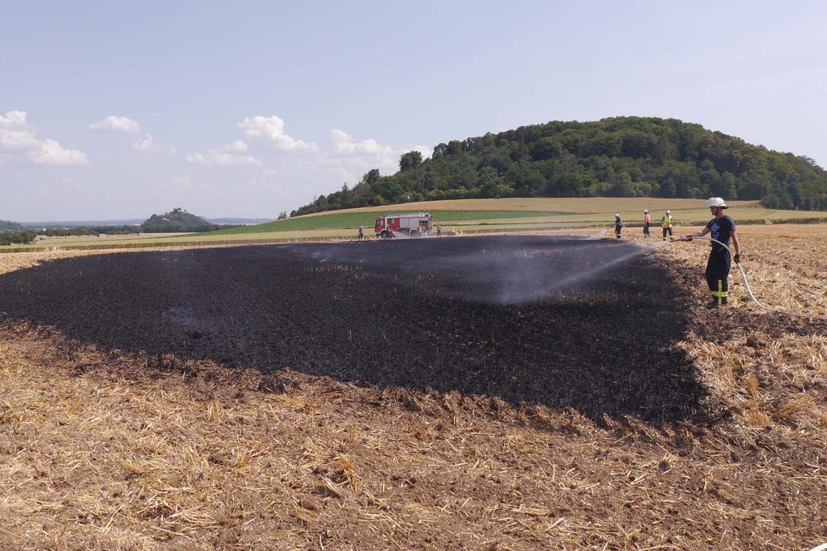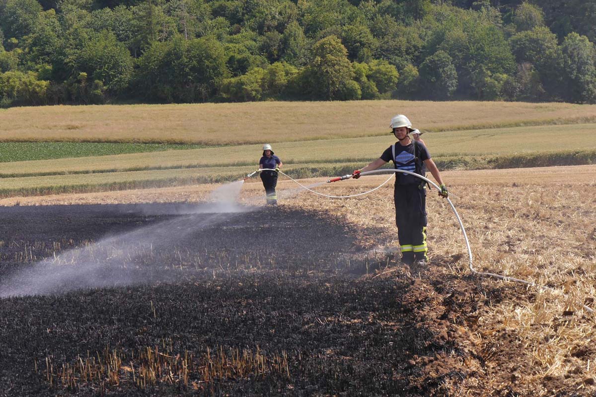 Ein weiterer Landwirt bemerkte das Feuer und reagierte geistesgegenwärtig. Mit seinem Schlepper und einem angehängten Grupper zog er um die ca. 400 m² brennende Fläche eine Schneise. Somit konnte sich das Feuer nicht weiter ausbreiten.