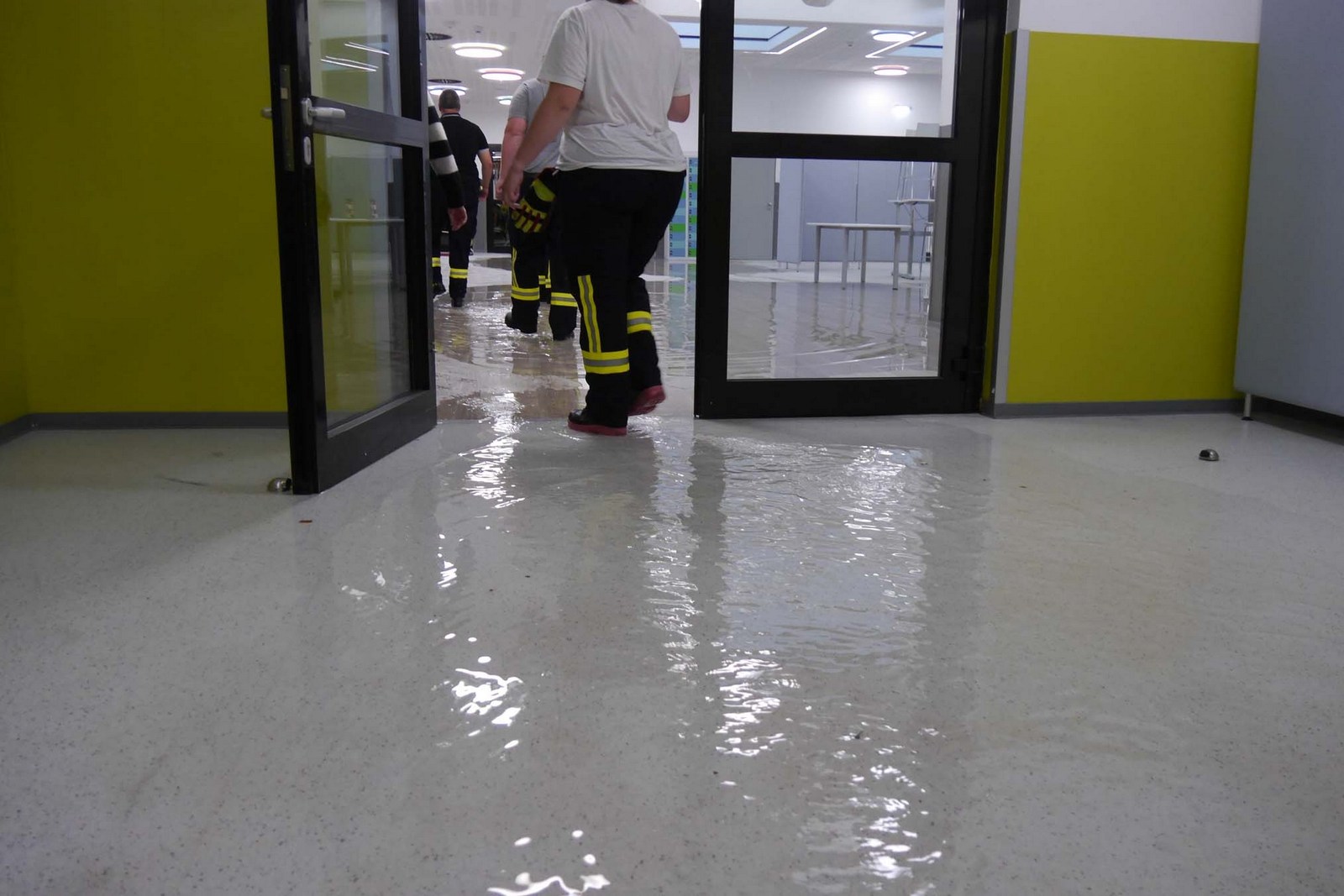 Wie Bernd Völske, Pressesprecher der Gudensberger Feuerwehren, berichtet, waren durch bisher nicht abschließend geklärte Umstände nach den Gewittern in der Nacht zu Donnerstag größere Mengen Regenwasser vom Flachdach der GAZ in das Gebäude gelangt und hatte sich über alle Geschosse ausgebreitet.