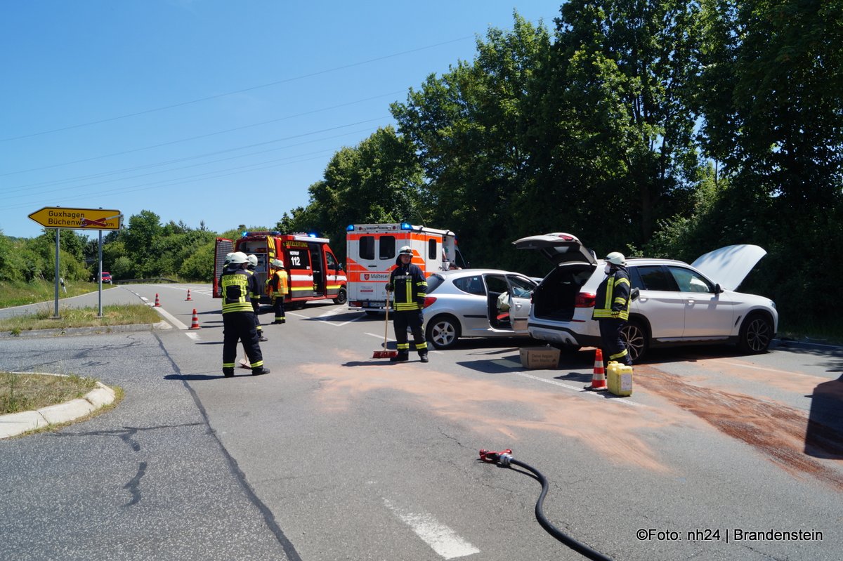 Die Feuerwehr Guxhagen war unter der Leitung von Stadtbrandinspektor Markus Brandenstein mit zehn Leuten vor Ort, die den Brandschutz sicherstellen, die Unfallstelle absicherten und ausgelaufene Betriebsstoffe sowie Trümmer entfernten. Die beiden beschädigten Pkw, an denen augenscheinlich hoher Schaden entstand, mussten abgeschleppt werden.