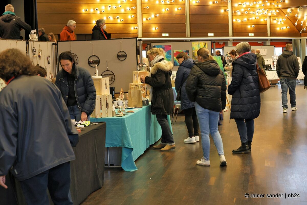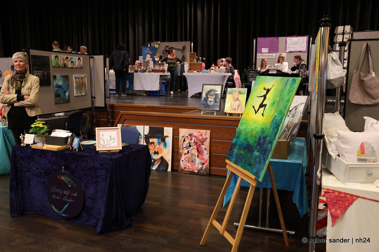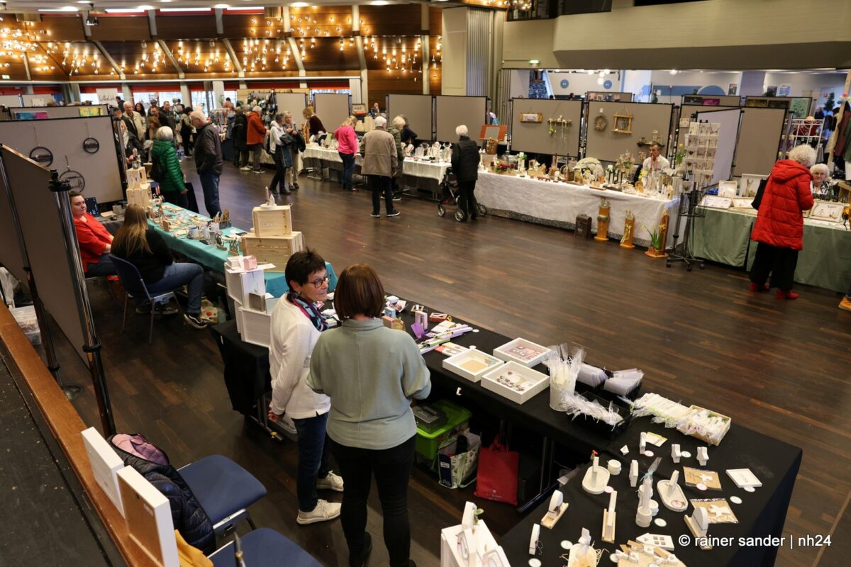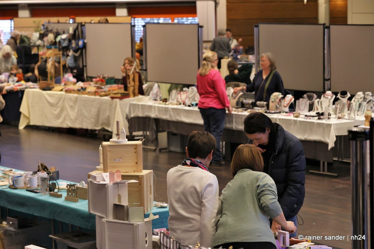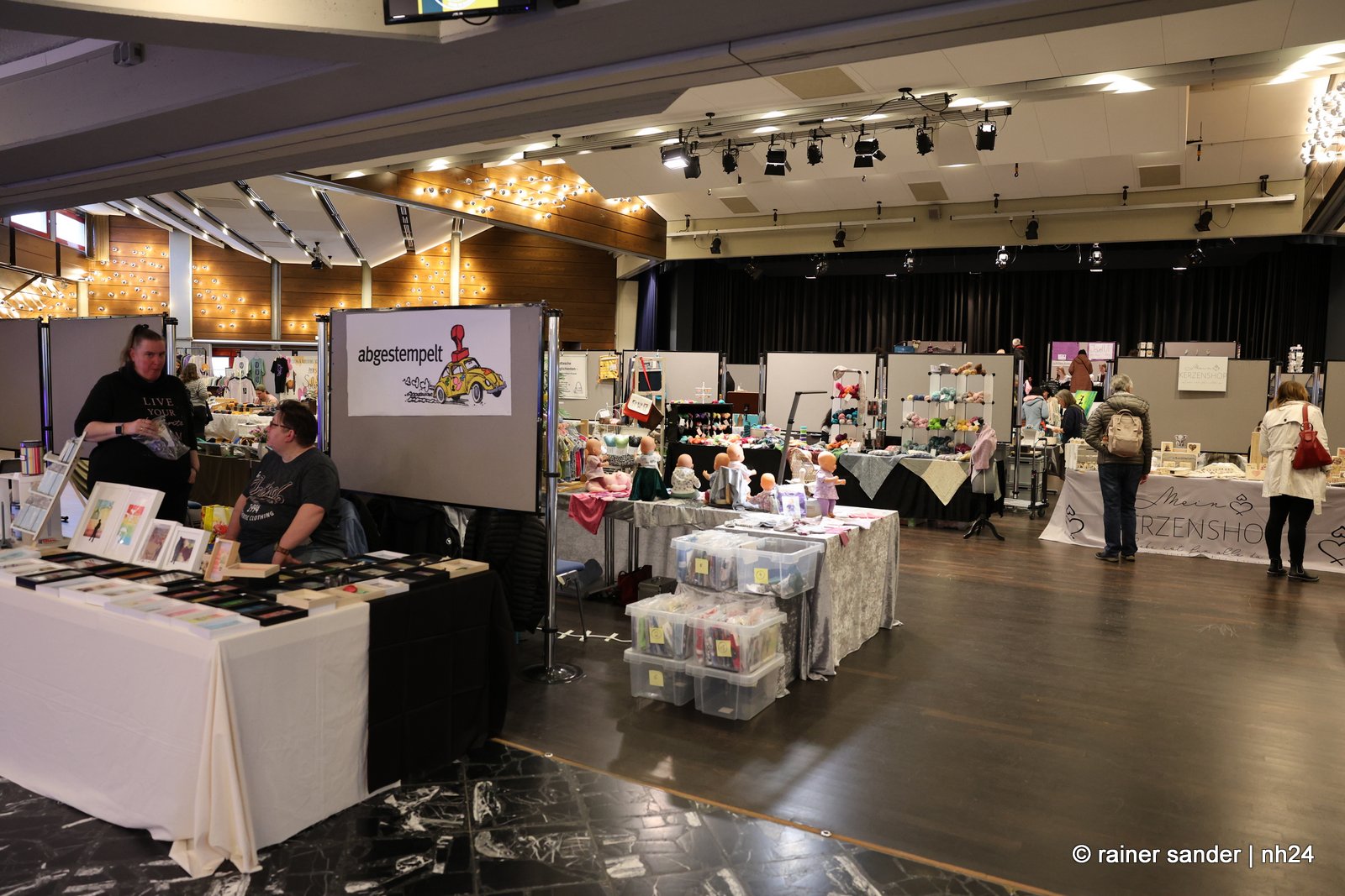 Die gesamte Stadthalle ist dann vollbesetzt mit Verkaufsständen und diese reichlich gefüllt mit Handgemachtem. Dabei stehen die Klassischen Künstler, wie Maler und Zeichner neben und zwischen Schneiderinnen und Schneidern, Täschnern, Buchbindern, Kerzenmachern, Seifensiedern, Papierschröpfern, Schmuck-Kreateuren, Kunstschreinern und anderen kunsthandwerklich begabten Menschen. Gemeint sind nicht die klassischen Handwerke, sondern Menschen, die kunstvoll Schönes, Dekoratives und Nützliches mit unterschiedlichsten Werkstoffen herstellen.