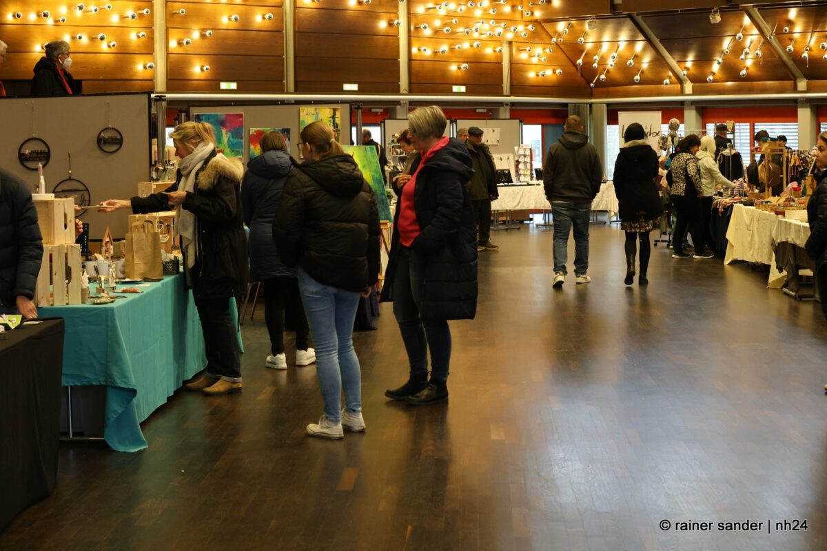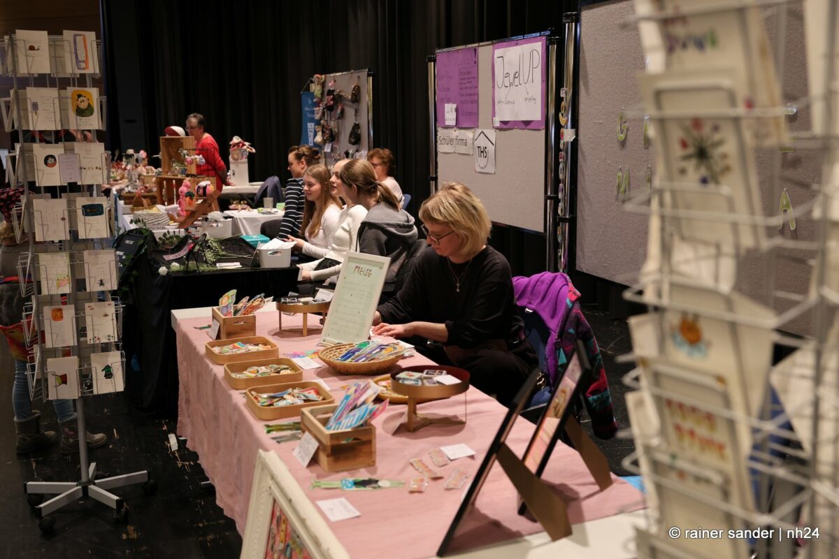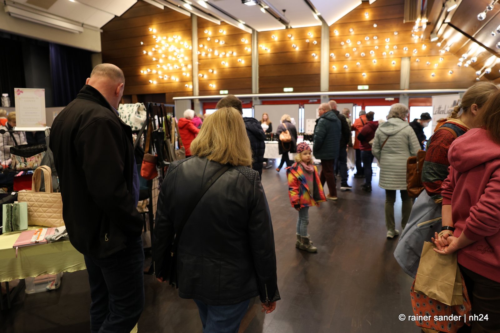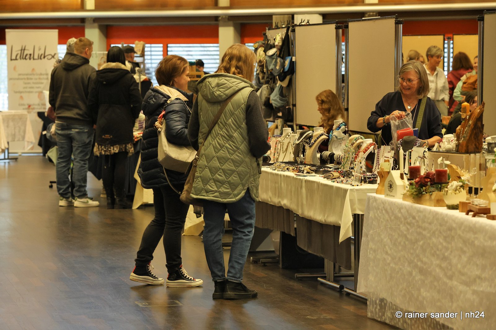 Die gesamte Stadthalle ist dann vollbesetzt mit Verkaufsständen und diese reichlich gefüllt mit Handgemachtem. Dabei stehen die Klassischen Künstler, wie Maler und Zeichner neben und zwischen Schneiderinnen und Schneidern, Täschnern, Buchbindern, Kerzenmachern, Seifensiedern, Papierschröpfern, Schmuck-Kreateuren, Kunstschreinern und anderen kunsthandwerklich begabten Menschen. Gemeint sind nicht die klassischen Handwerke, sondern Menschen, die kunstvoll Schönes, Dekoratives und Nützliches mit unterschiedlichsten Werkstoffen herstellen.