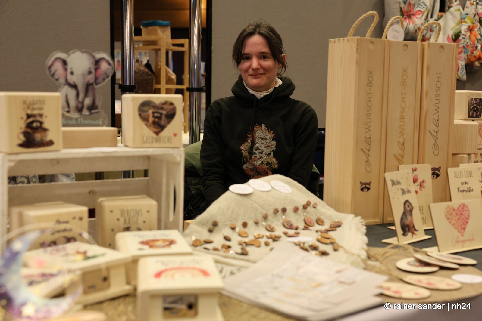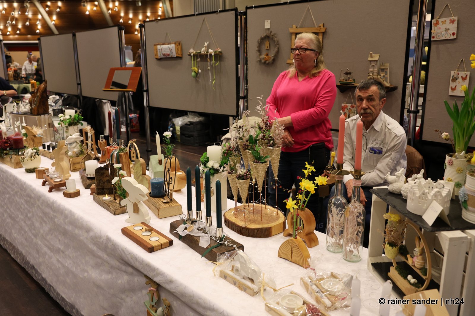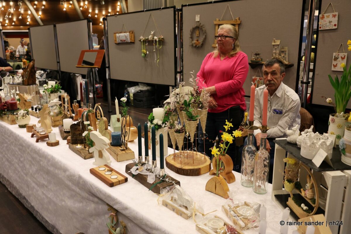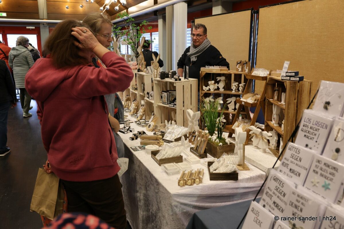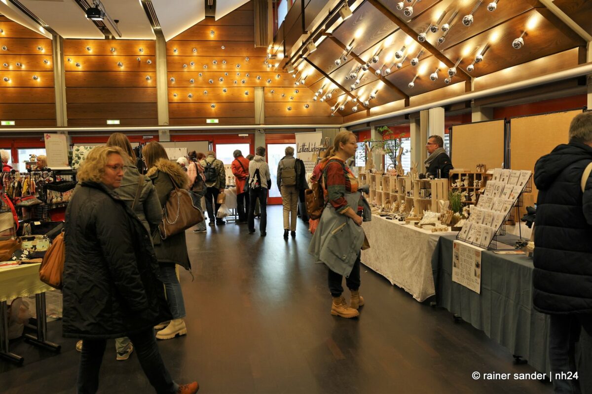 Die gesamte Stadthalle ist dann vollbesetzt mit Verkaufsständen und diese reichlich gefüllt mit Handgemachtem. Dabei stehen die Klassischen Künstler, wie Maler und Zeichner neben und zwischen Schneiderinnen und Schneidern, Täschnern, Buchbindern, Kerzenmachern, Seifensiedern, Papierschröpfern, Schmuck-Kreateuren, Kunstschreinern und anderen kunsthandwerklich begabten Menschen. Gemeint sind nicht die klassischen Handwerke, sondern Menschen, die kunstvoll Schönes, Dekoratives und Nützliches mit unterschiedlichsten Werkstoffen herstellen.