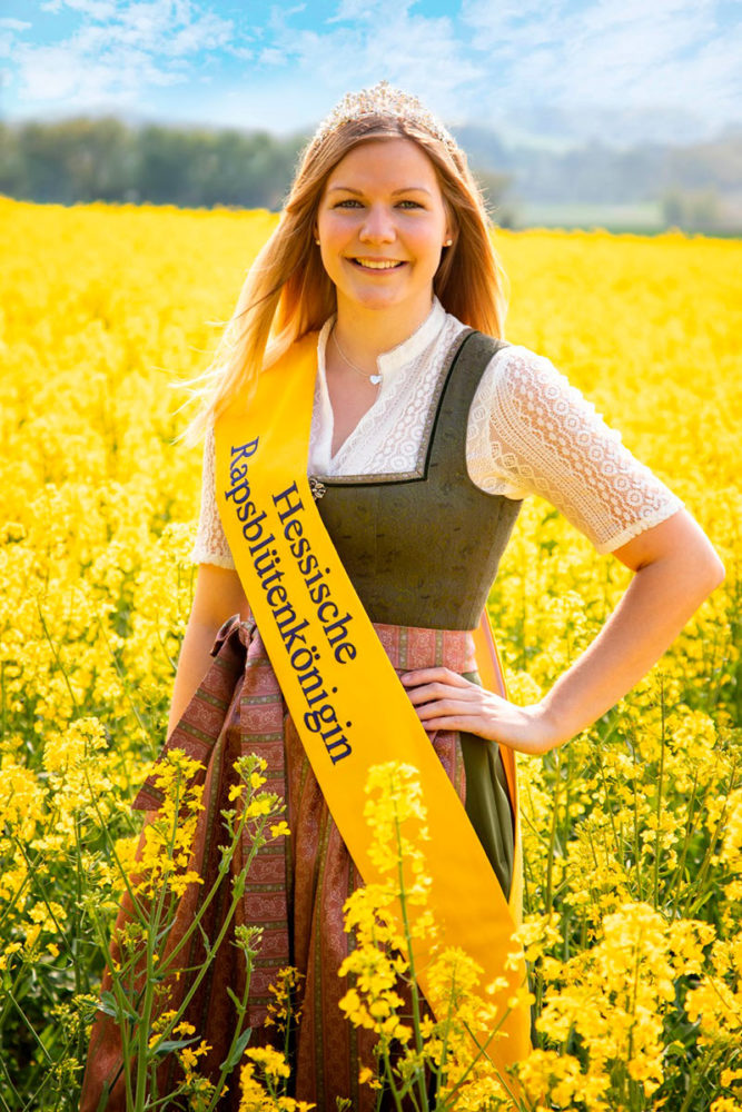 Die 23-jährige gelernte Bankkauffrau stammt von einem landwirtschaftlichen Betrieb aus Frielendorf-Schönborn und studiert seit dem vergangenen Herbst Agrarwissenschaften an der Universität Göttingen. „Das Amt der Hessischen Rapsblütenkönigin gibt mir die Chance, Raps als wertvolles und hochwertiges Lebensmittel der Gesellschaft und Politik näher zu bringen, um so den regionalen Rapsanbau zu stärken und nachhaltig zu sichern“, sagte sie nach ihrer Krönung.