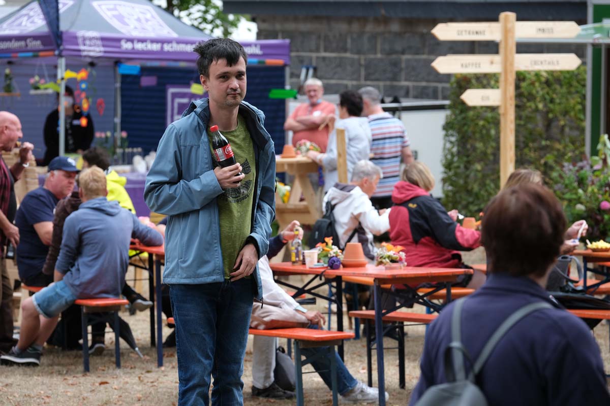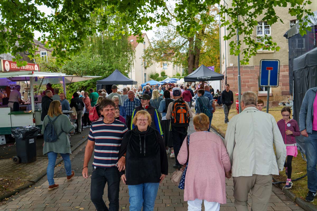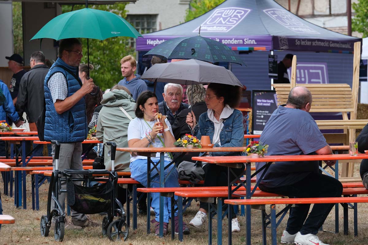 „Wir müssen erst mal wieder reinkommen, es ist ein Neustart“, fasste es Hephata-Mitarbeiterin Anastasia Schulz am Kartoffelpuffer-Stand im Bio-Dorf zusammen. Doch die alten Bekannten hatten Verständnis, ging es einigen von ihnen doch ähnlich: „Ach, stimmt, wir müssen ja mit Chips bezahlen“, lautete bei manch einem die Erkenntnis vor der Theke. Lachen und Achselzucken, na und die Freunde am Neustart war allen Beteiligten anzumerken. „Wie schön, wieder hier zu sein“ und „Ich muss zunächst gucken, ob die selbst gestrickten Socken noch da sind“ oder „Gibt es wieder Kistenklettern?“ waren dann auch nur einige Sprachfetzen, die im Vorbeigehen auf der Festtagsmeile zu hören waren.
