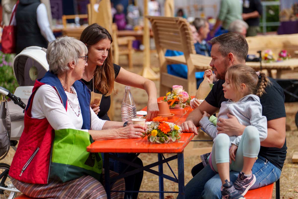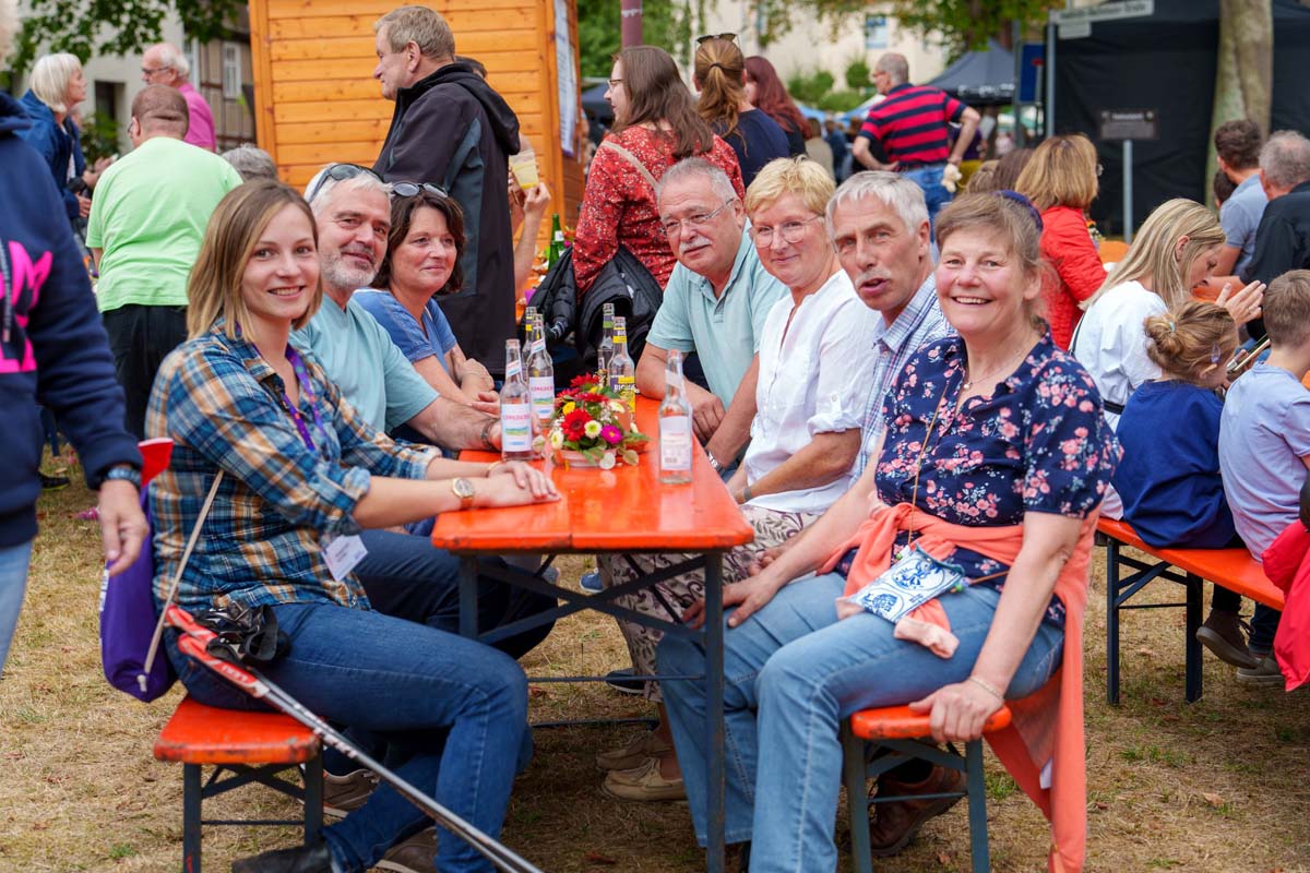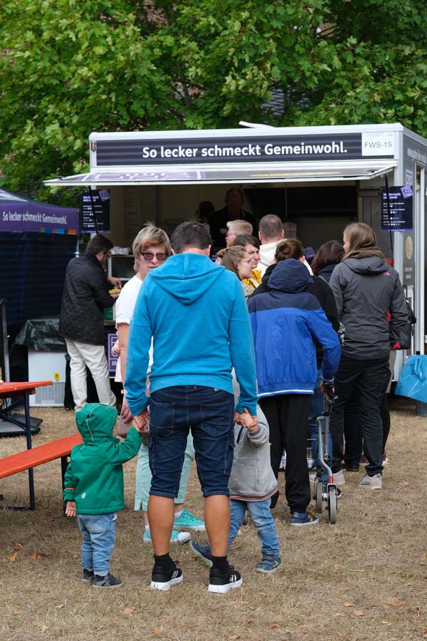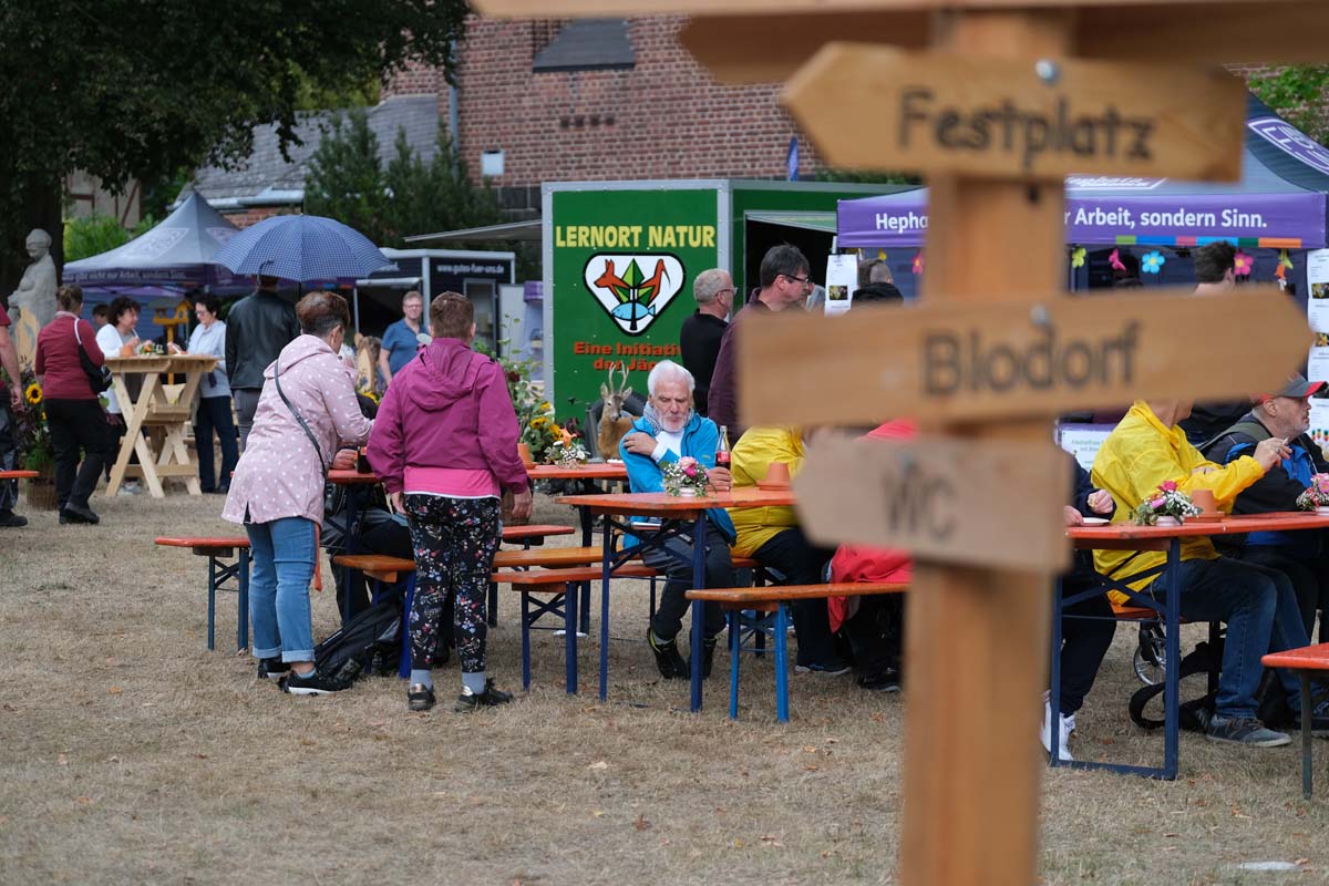 „Wir müssen erst mal wieder reinkommen, es ist ein Neustart“, fasste es Hephata-Mitarbeiterin Anastasia Schulz am Kartoffelpuffer-Stand im Bio-Dorf zusammen. Doch die alten Bekannten hatten Verständnis, ging es einigen von ihnen doch ähnlich: „Ach, stimmt, wir müssen ja mit Chips bezahlen“, lautete bei manch einem die Erkenntnis vor der Theke. Lachen und Achselzucken, na und die Freunde am Neustart war allen Beteiligten anzumerken. „Wie schön, wieder hier zu sein“ und „Ich muss zunächst gucken, ob die selbst gestrickten Socken noch da sind“ oder „Gibt es wieder Kistenklettern?“ waren dann auch nur einige Sprachfetzen, die im Vorbeigehen auf der Festtagsmeile zu hören waren.