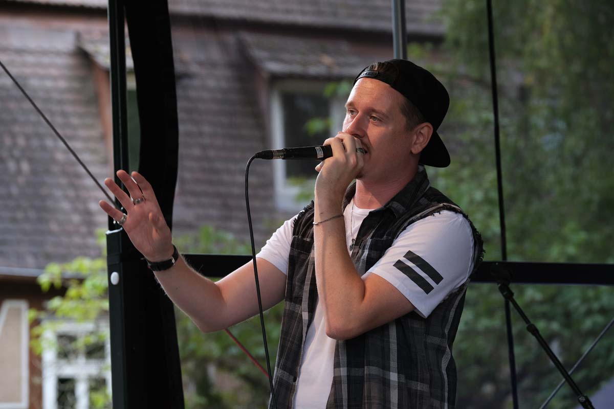 Partystimmung kam dann mit den „Schlagerpiloten“ auf, die mit fast 500 Zuschauer*innen abhoben. Dabei mussten Stefan Peters und Kevin Marx krankheitsbedingt auf ihren Co-Piloten Frank Cordes verzichten, hatten die Bühne und Menge aber schnell im Griff: Bei Ausflügen ins Publikum und Sommerhits wie „Oh mi amor“ und „Cuba Cuba libre“ gab es kein Halten mehr. Erst recht nicht, als die beiden Musiker ihren Hit „Sommer-Sonnen-Feeling“ anstimmten.