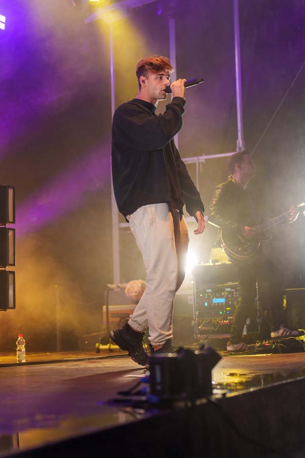 „Vor Corona habe ich 2019 das erste Mal einen Festivalsommer gespielt, das war ein geiles Gefühl. Jetzt ist das Gefühl wieder da und wir starten neu“, so Moritz Garth vor seinem Auftritt. Ihm hingen Mareike Otterbach aus Bottendorf, Selina Schneider aus Treysa und Nicole Rocha-Schulz aus Frankenberg an den Lippen, die jeweils mit Begleitung ein „Meet & Greet“ mit dem Sänger gewonnen hatten. „Krass, nach zwei Jahren Pause. Ich bin wieder so aufgeregt, wie beim ersten Auftritt“, so Garth. Davon war auf der Bühne dann nichts mehr zu spüren, als Hits wie „Bumerang“ und „Kaltes Wasser“ die Zuschauer*innen begeisterten.