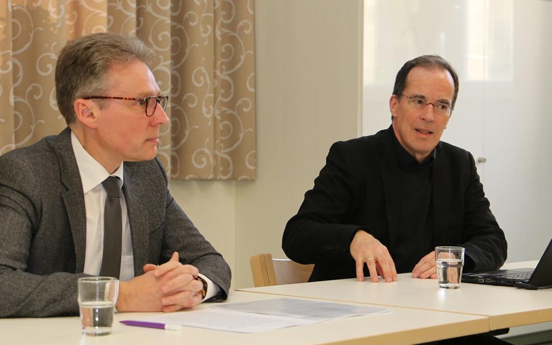 Das Bild: Hephata-Vorstandssprecher Maik Dietrich-Gibhardt (links) und Medizinhistoriker Prof. Dr. Volker Roelcke von der Universität Gießen bei der Vorstellung des Abschlussberichts