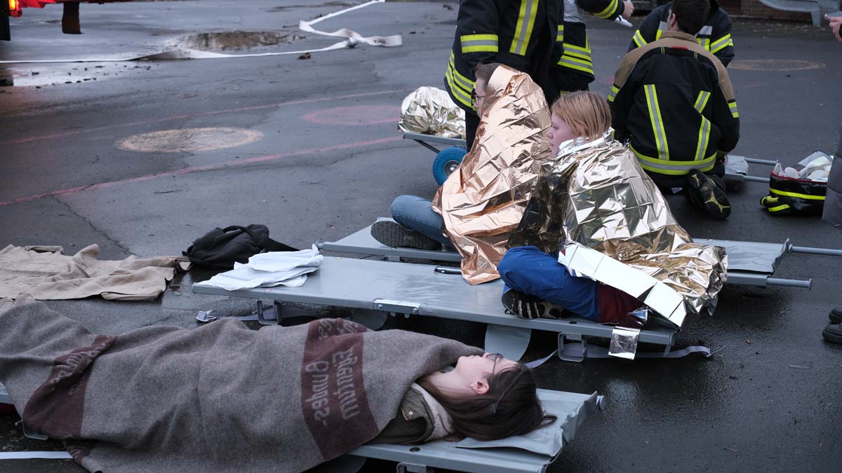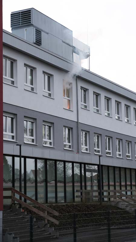 Ein Kind hatte im Bereich der Schultoiletten im Untergeschoss gezündelt, woraufhin dichter, undurchdringlicher Brandrauch entstand, der sich schnell in großen Teilen des Gebäudes ausbreitete.