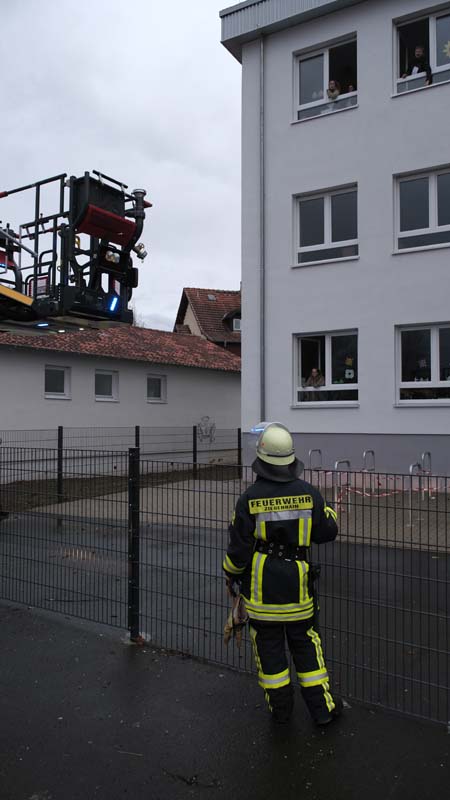 Mit dem Eintreffen des Kommandowagens der Feuerwehr Schwalmstadt übernahm der stellvertretende Wehrführer in Ziegenhain, Philipp Völker, der seit Januar im Amt ist, die Einsatzleitung. Er informierte sich zunächst beim Hausmeister der Grundschule über die Lage und erfuhr unter anderem, dass sich noch etwa 25 Personen im Gebäude befanden.