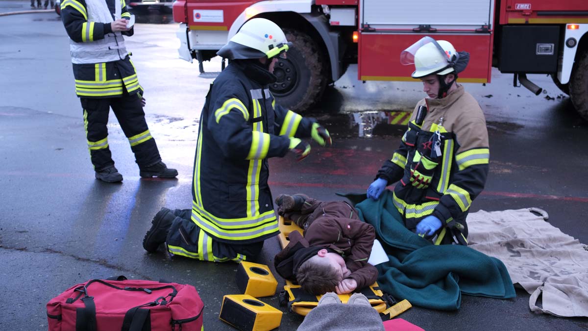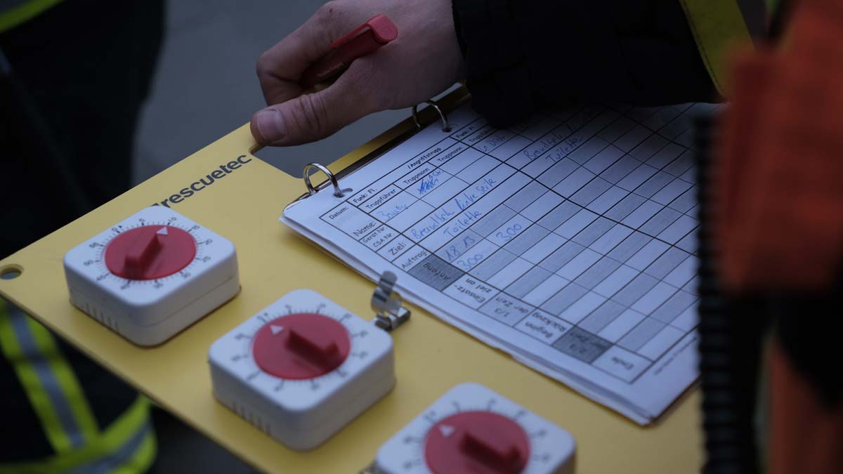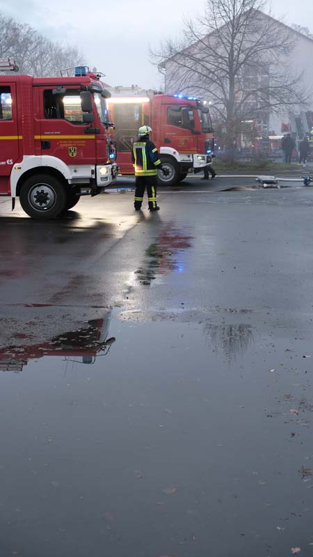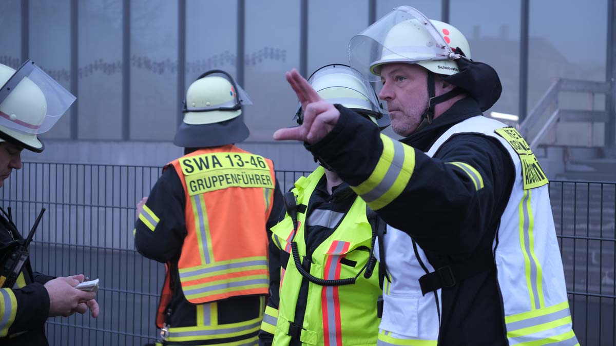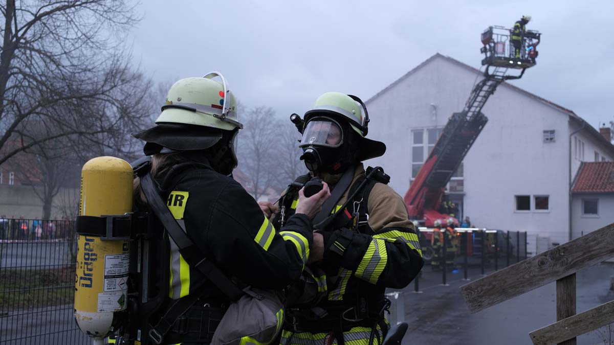 Von da an liefen die Rettungsmaßnahmen auf Hochtouren: Während Abschnittleiter ihre Teams instruierten, sorgten andere Kameraden für eine sichere Wasserversorgung und rüsteten sich mit Atemschutzgeräten aus. Mehrere Trupps drangen unter schwerem Atemschutz in das verrauchte Gebäude ein, wo die Sicht so schlecht war, dass man die eigene Hand vor Augen nicht sehen konnte. Mit der Drehleiter wurden Personen aus dem 2. Obergeschoss gerettet. Nachdem die Quelle des Brandrauchs lokalisiert worden war, gelang es, alle verbliebenen Personen sicher ins Freie zu bringen, wo sie von der Feuerwehr betreut und je nach Verletzungsgrad medizinisch versorgt wurden.