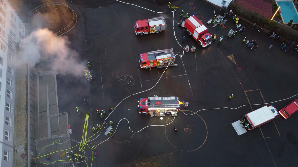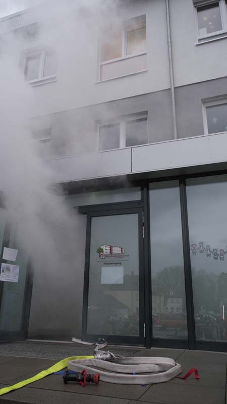 Ein Feuerwehrmann sorgte für zusätzliche Realitätsnähe, indem er das Gebäude künstlich vernebelte und mit audiovisuellen Effekten arbeitete, um die Anspannung der Einsatzkräfte zu steigern. Rund 60 Feuerwehrleute aus Treysa und Ziegenhain hatten sich an der Übung beteiligt. (wal)