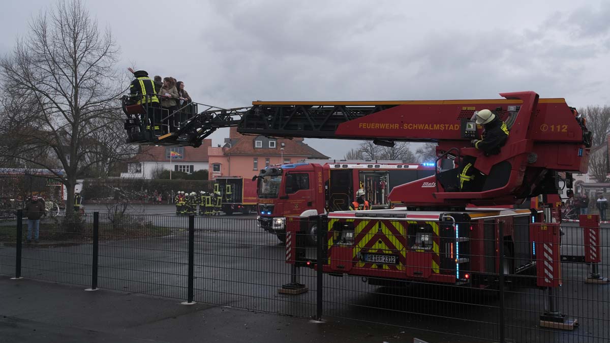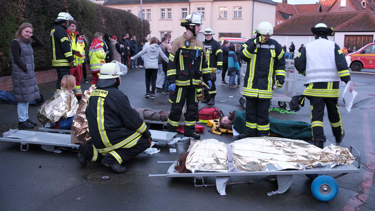 Trotz widriger Wetterverhältnisse – ein Gewitter zog fünf Minuten vor Übungsbeginn über Schwalmstadt – versammelten sich zahlreiche Zuschauer am Alleeplatz, um das Szenario zu verfolgen.