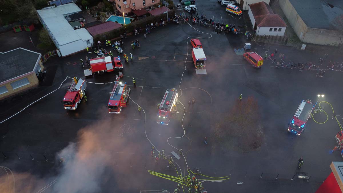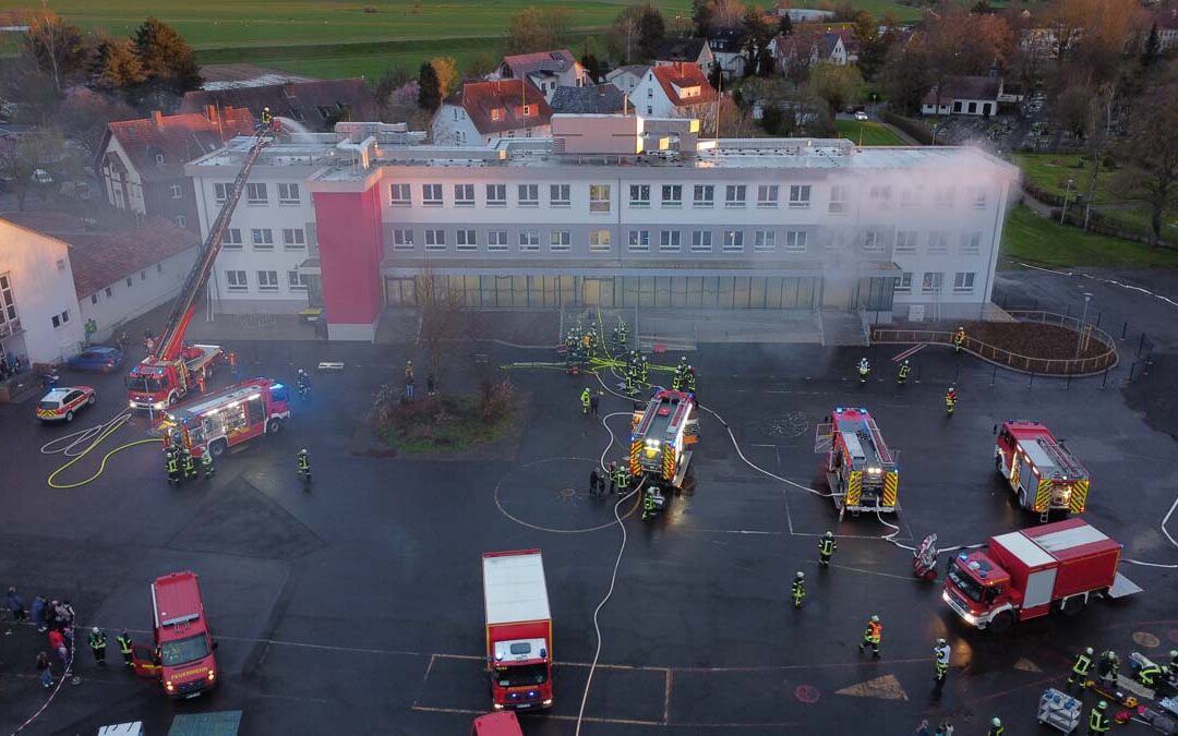 SCHWALMSTADT-ZIEGENHAIN. Für die Gründonnerstagübung der Schwalmstädter Feuerwehr-Einsatzabteilungen Treysa und Ziegenhain sollte in der Grundschule am Alleeplatz in Schwalmstadt-Ziegenhain ein Feuer ausgebrochen sein: