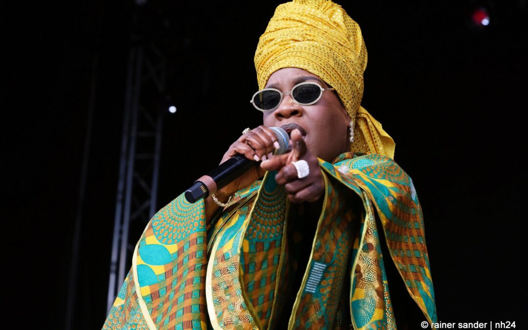Reggae habe man fataler Weise im letzten Jahr vergessen, diesmal wird das ausgeglichen. Gestern mit etwas Verzögerung: „Das Zeitverständnis nach dem Konsum ist anders“, stellte Wolfgang Wortmann in der Anmoderation für „Queen Omega & The Royal Souls“ fest: „Hattet Ihr wirklich erwartet, dass das jetzt gleich weitergeht? Hat jemand eine Frage?“ „Wo ist morgen?“ Will jemand vor der Bühne wissen. „Zwei Tage zurück und rechts ab“, erklärt Wortmann und etwas zerknirscht: „Ich überbrücke das nicht mehr, das ist mir unangenehm …“ Die Band beginnt ohne die Queen und die singt dann – mit 20 Minuten Verspätung – stimmgewaltig von „Judgement“ und „Amazing Grace“. Reggae in perfektem Sound.