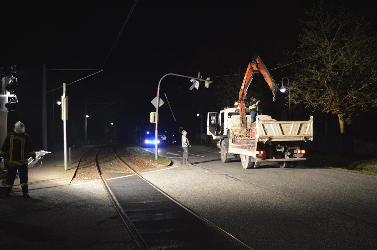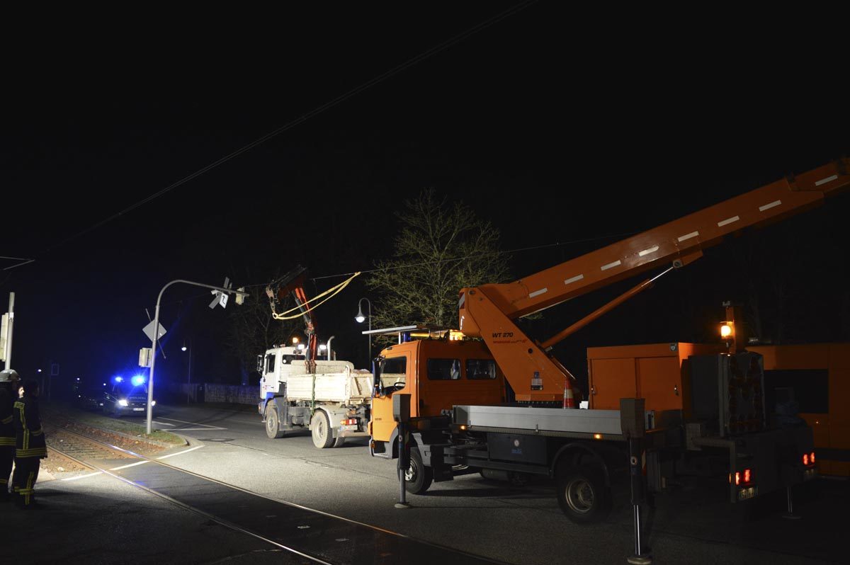 HESSISCH LICHTENAU. In Friedrichsbrücker Straße in Hessisch Lichtenau blieb am frühen Mittwochabend ein Mann mit dem Ladekran seines Lkw in der Oberleitung der Straßenbahn hängen.