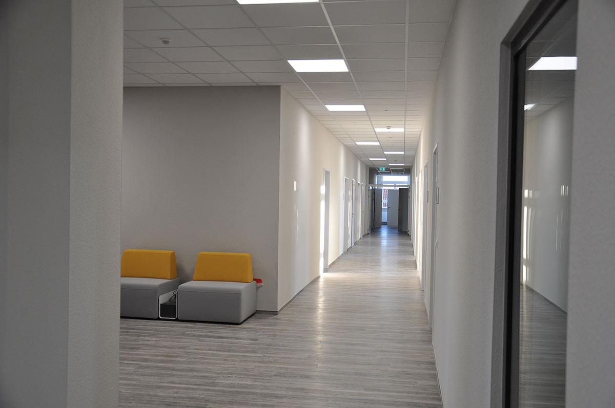 Fünf neue Seminarräume, zehn Büros, ein Sekretariat und ganz viel Platz – gut 600 Quadratmeter umfasst das neue Zuhause der EHD in dem Klinkerbau gegenüber der Hephata-Kirche – einem der ältesten Gebäude Hephatas. Auch eine großzügige Teeküche sowie barrierefreie unisex-Sanitärräume sind hier untergebracht.