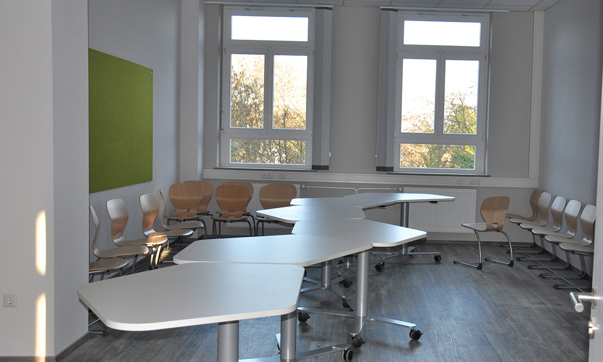 ….Filztafeln an den Wänden sollen in den Seminarräumen interaktives Arbeiten ermöglichen…..