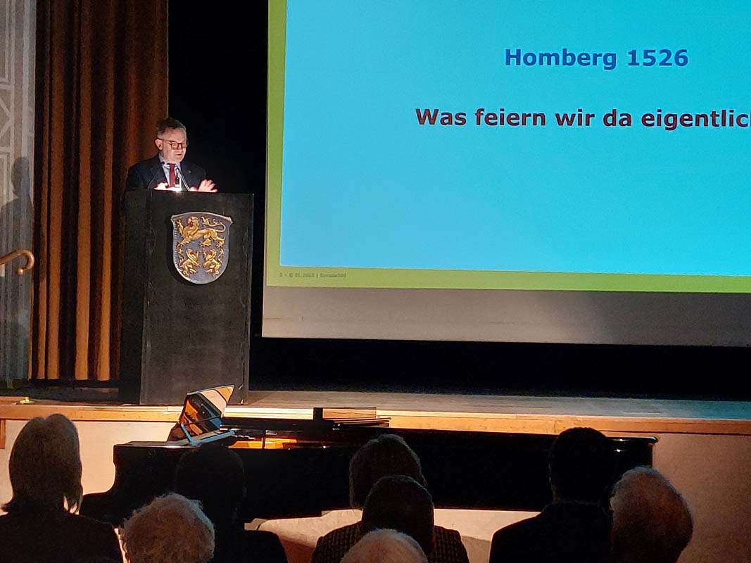 HOMBERG (EFZE). Mit einer Informationsveranstaltung in der Homberger Stadthalle fiel am 30. Januar 2025 der Startschuss für das Jubiläumsjahr „500 Jahre Homberger Synode – 500 Jahre Reformation“. Bis zum Reformationstag am 31. Oktober 2026 sind zahlreiche Veranstaltungen in Homberg und der Region geplant.
