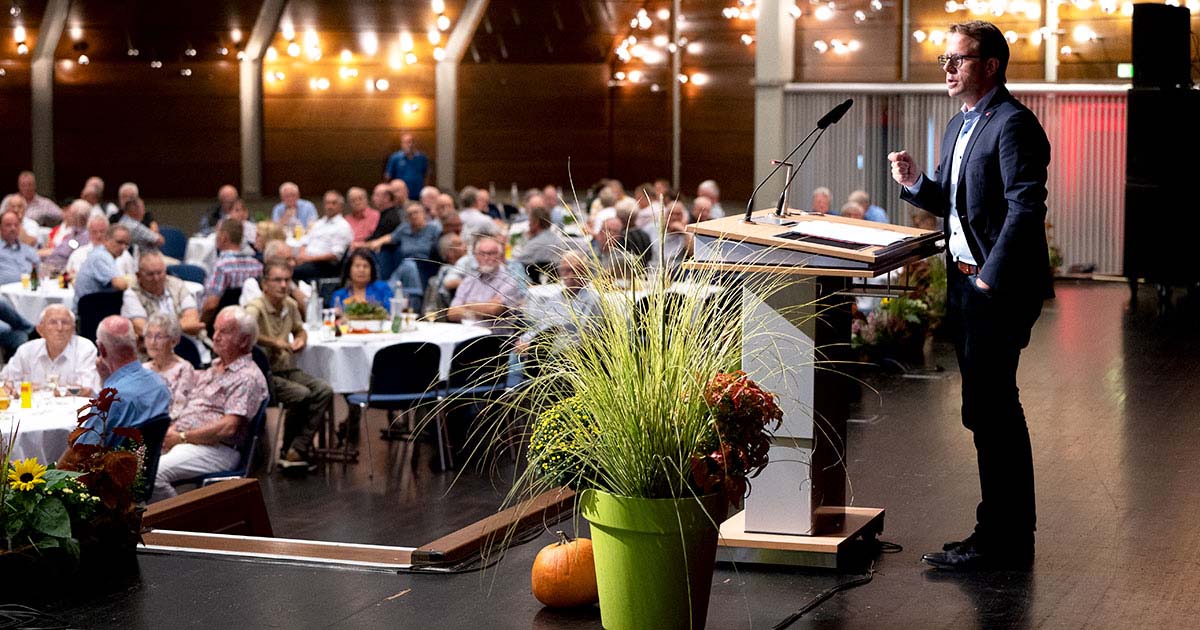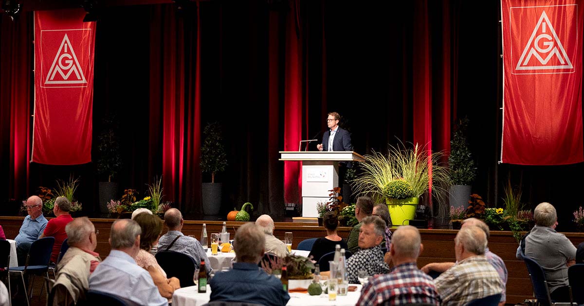 Als Festredner beglückwünschte der Vorsitzende des DGB Hessen-Thüringen, Michael Rudolph, die versammelten Jubilare. „Im Namen des Deutschen Gewerkschaftsbundes sage ich Danke für eure Verlässlichkeit und Treue, Danke für euer Engagement und eure Unterstützung über Jahrzehnte hinweg!“ Rudolph sprach sich für einen Brückenstrompreis für Handwerk und Industrie aus, bis der Ausbau der erneuerbaren Energien den Marktstrompreis normalisiert hat. „Das ist notwendig, weil sonst in energieintensiven Branchen eine Deindustrialisierung droht“, sagte der Gewerkschafter. Die Industrie aber sei das starke Rückgrat der Wirtschaft und der Wertschöpfung – gerade in Nordhessen. „Es darf jetzt nicht mehr lange gewartet werden, sondern wir brauchen jetzt schnelles und entschlossenes Handeln, um Ruhe in die Produktionsbetriebe zu bekommen“, forderte Rudolph. „Die Politik muss jetzt dafür sorgen, dass wir nicht um Jahre zurückgeworfen werden!“