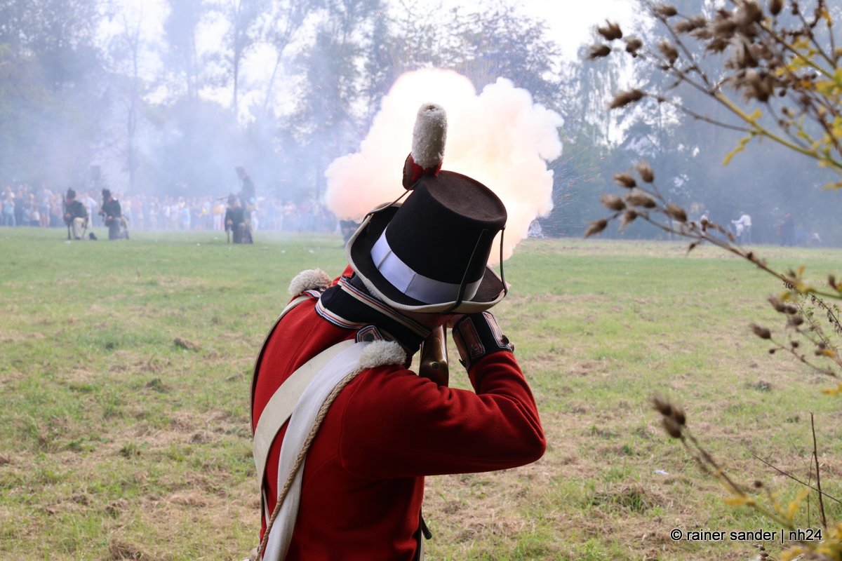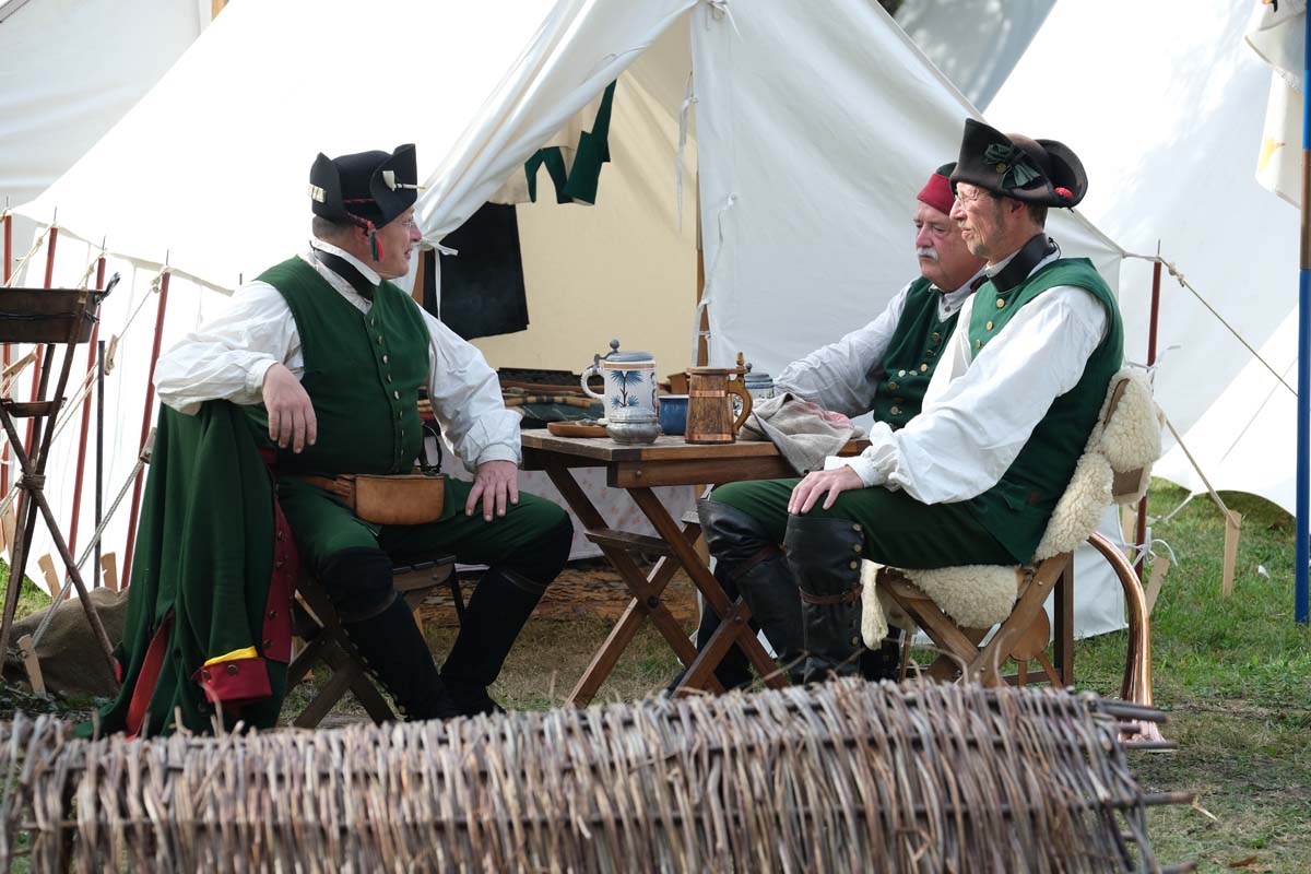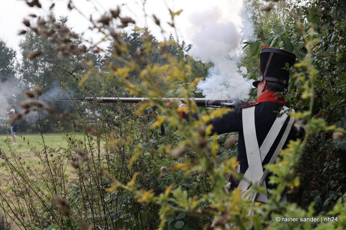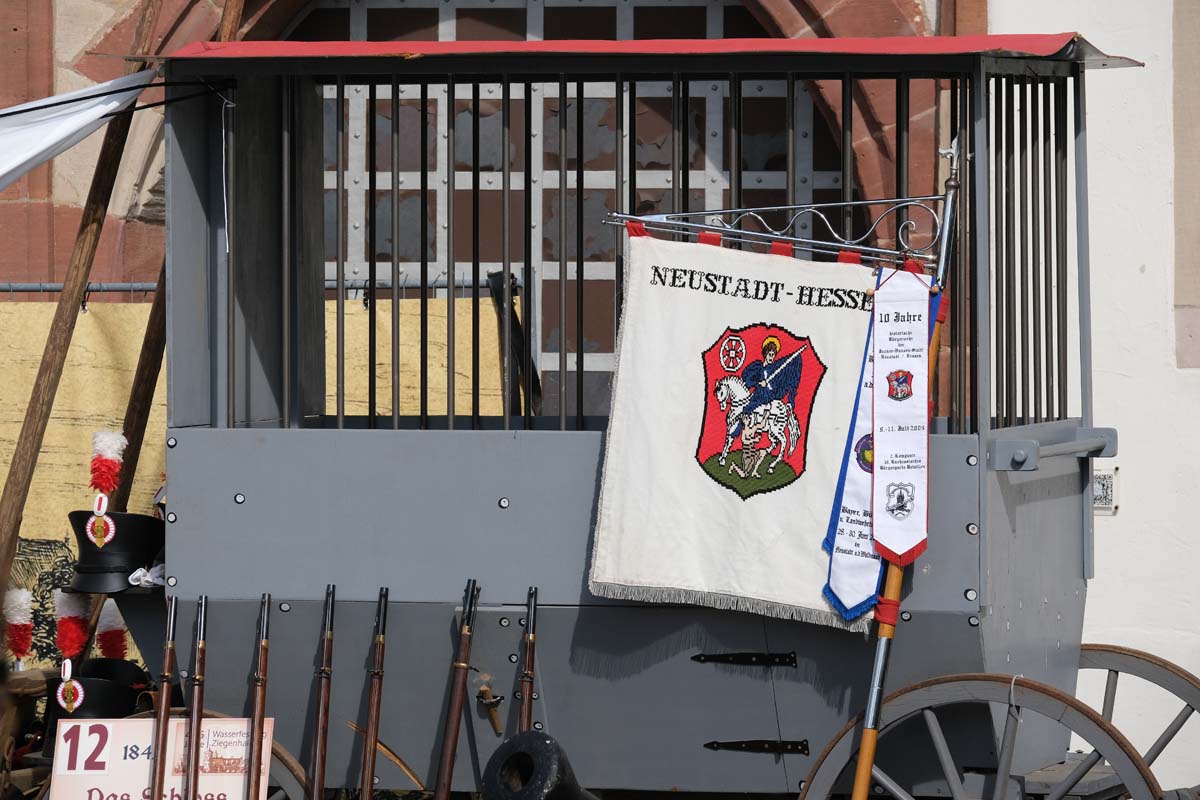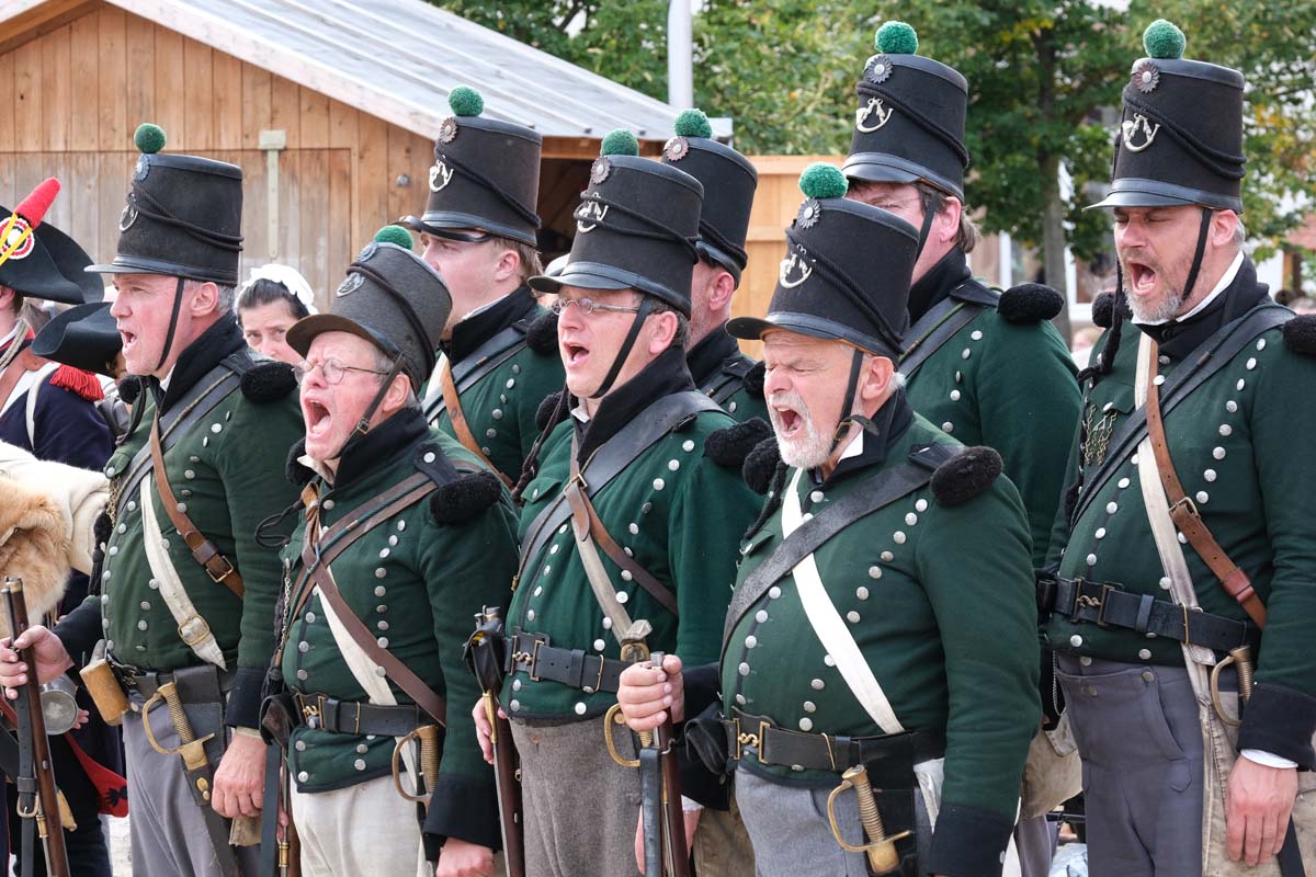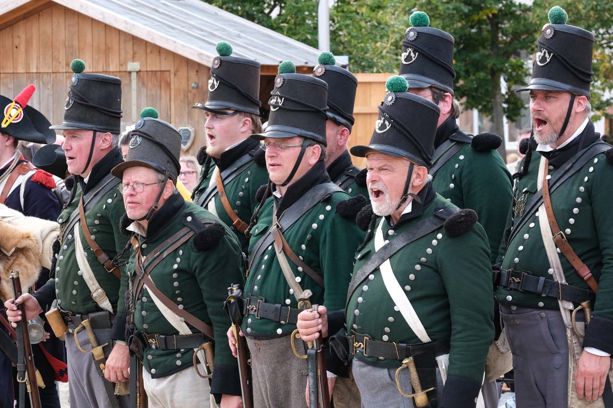 Echte Kugeln wurden in der eigentlichen Waffenverbotszone rund um die JVA selbstverständlich nicht abgeschossen. Trotzdem wurden auch die Vorderlader der Soldaten mit Zündhütchen und Schwarzpulver geladen. Die Mündungsfeuer waren beeindruckend, die Geräuschkulisse respekteinflößend und die Darstellung sehenswert. Verletzt wurde niemand, auch die gefallenen Soldaten durften beim Schlussappell zum Ausklang auf dem Paradeplatz wieder mitspielen.