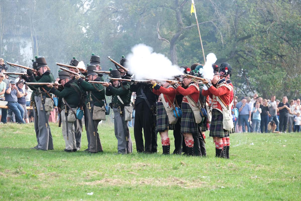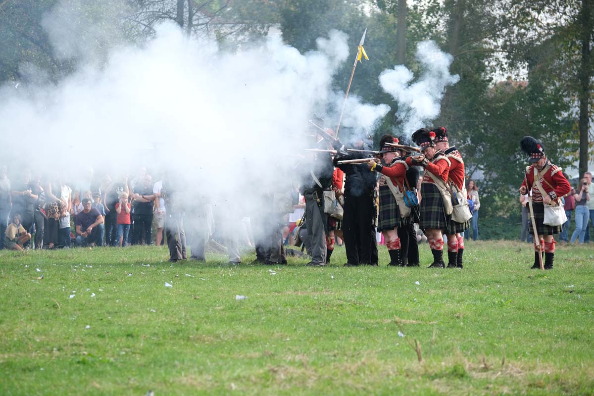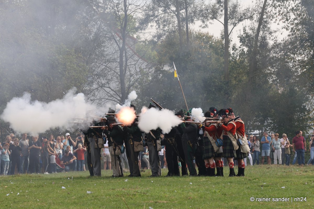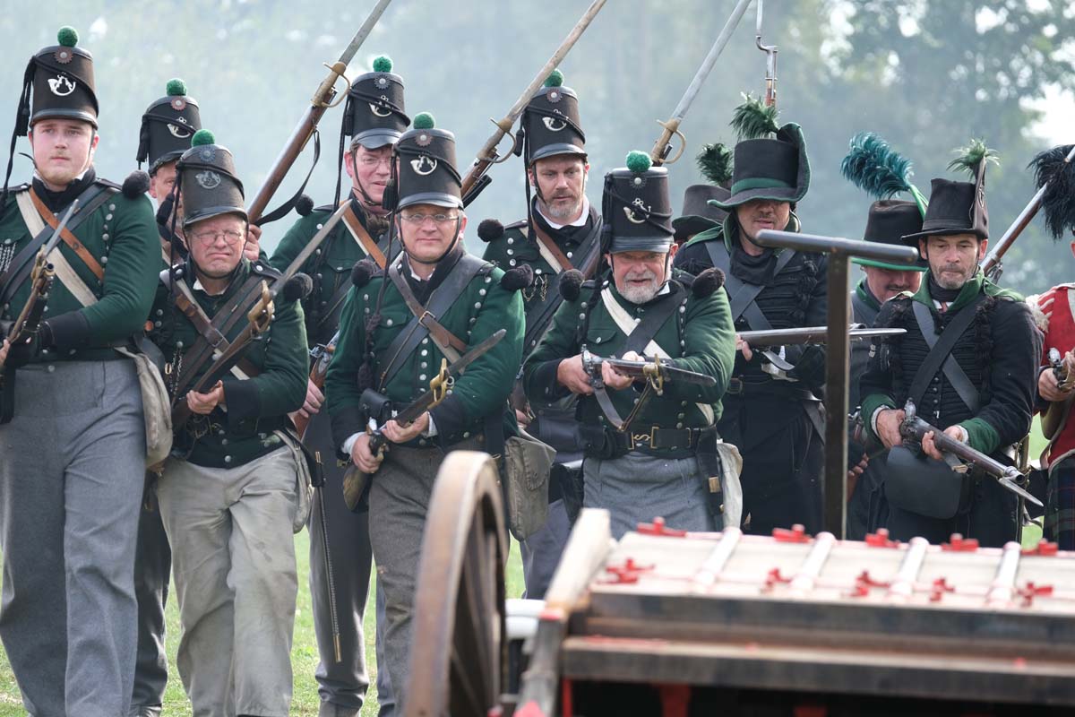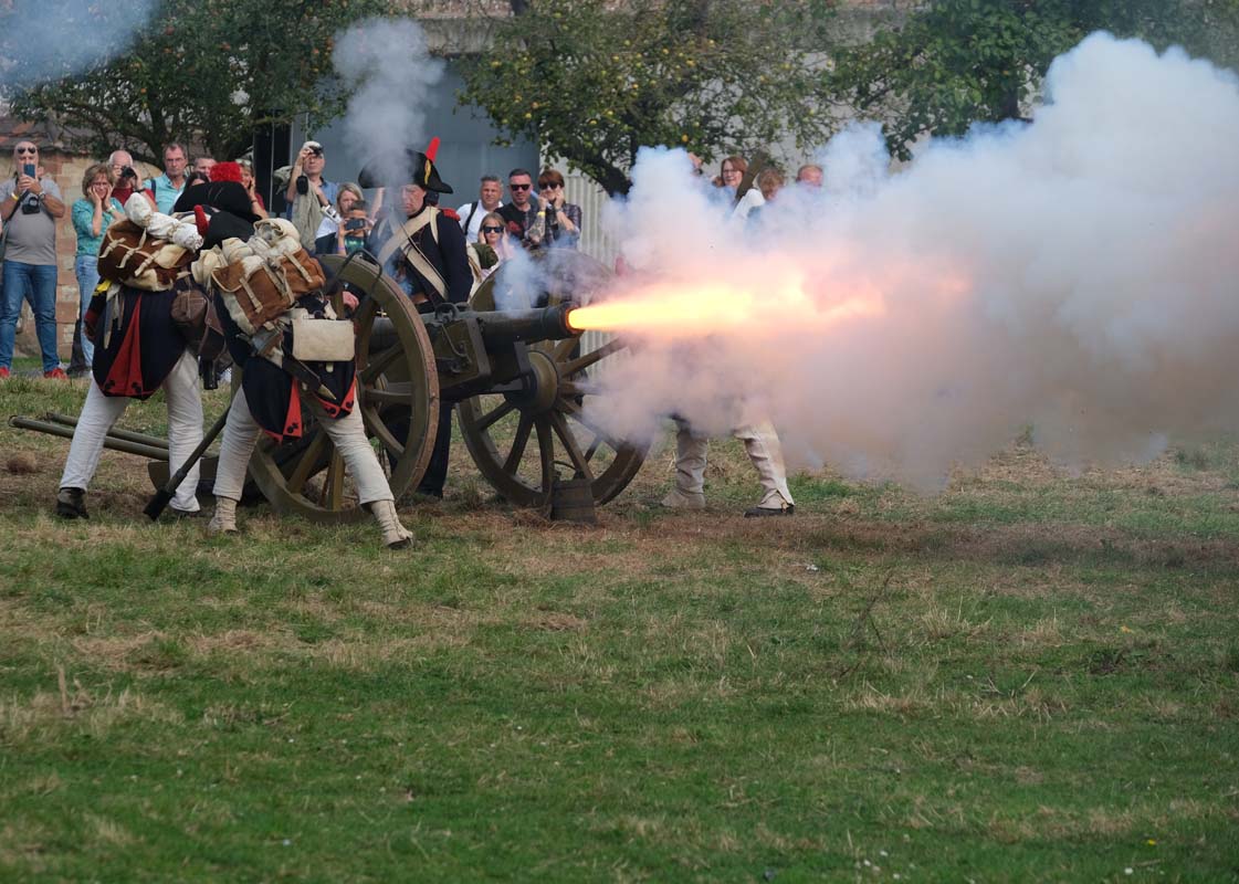 Echte Kugeln wurden in der eigentlichen Waffenverbotszone rund um die JVA selbstverständlich nicht abgeschossen. Trotzdem wurden auch die Vorderlader der Soldaten mit Zündhütchen und Schwarzpulver geladen. Die Mündungsfeuer waren beeindruckend, die Geräuschkulisse respekteinflößend und die Darstellung sehenswert. Verletzt wurde niemand, auch die gefallenen Soldaten durften beim Schlussappell zum Ausklang auf dem Paradeplatz wieder mitspielen.